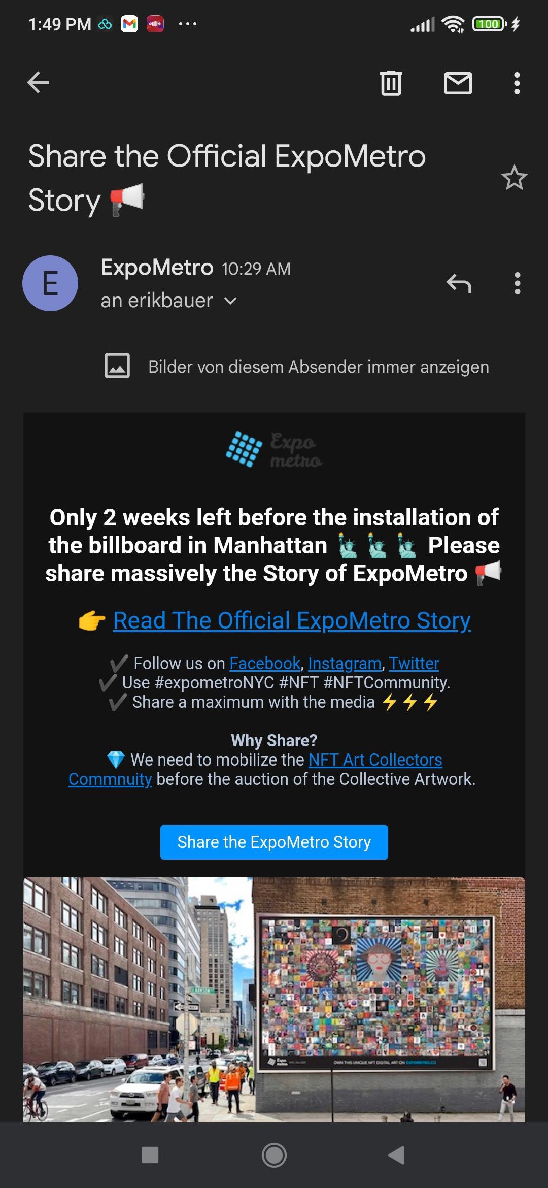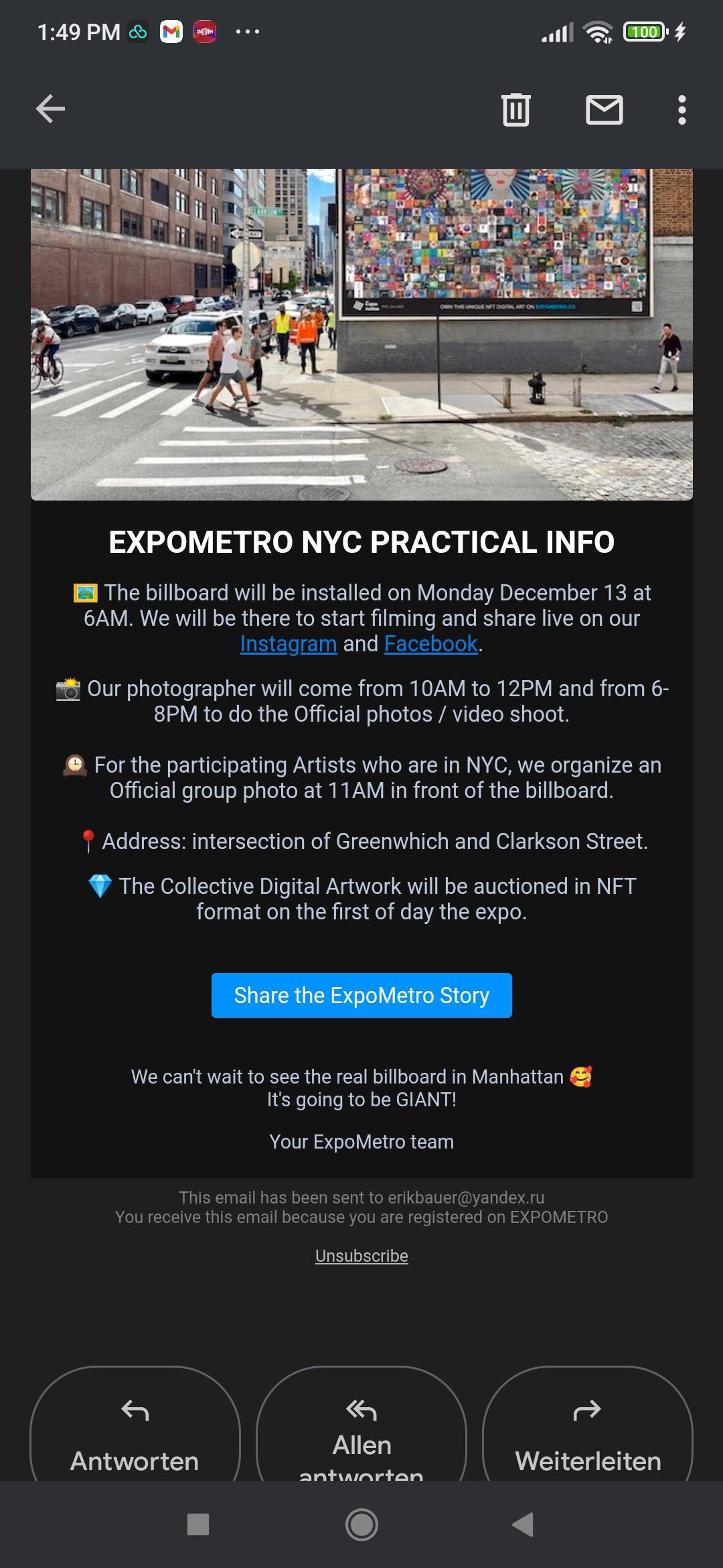 ️ For the participating Artists who are in NYC, we organize an Official group photo at 11AM in front of the billboard.