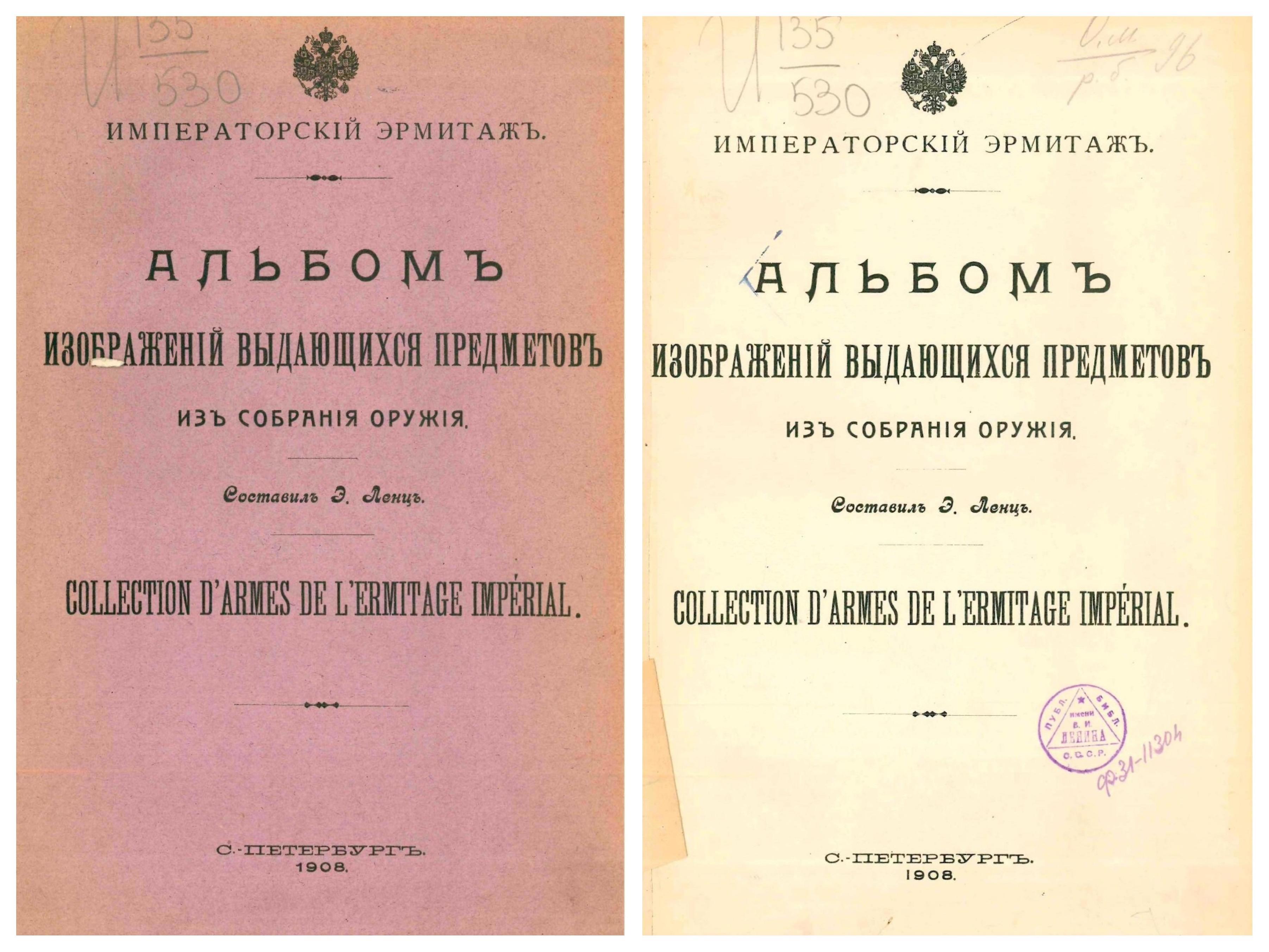 1908. Альбом изображений выдающихся предметов из собрания оружия Императорского Эрмитажа.