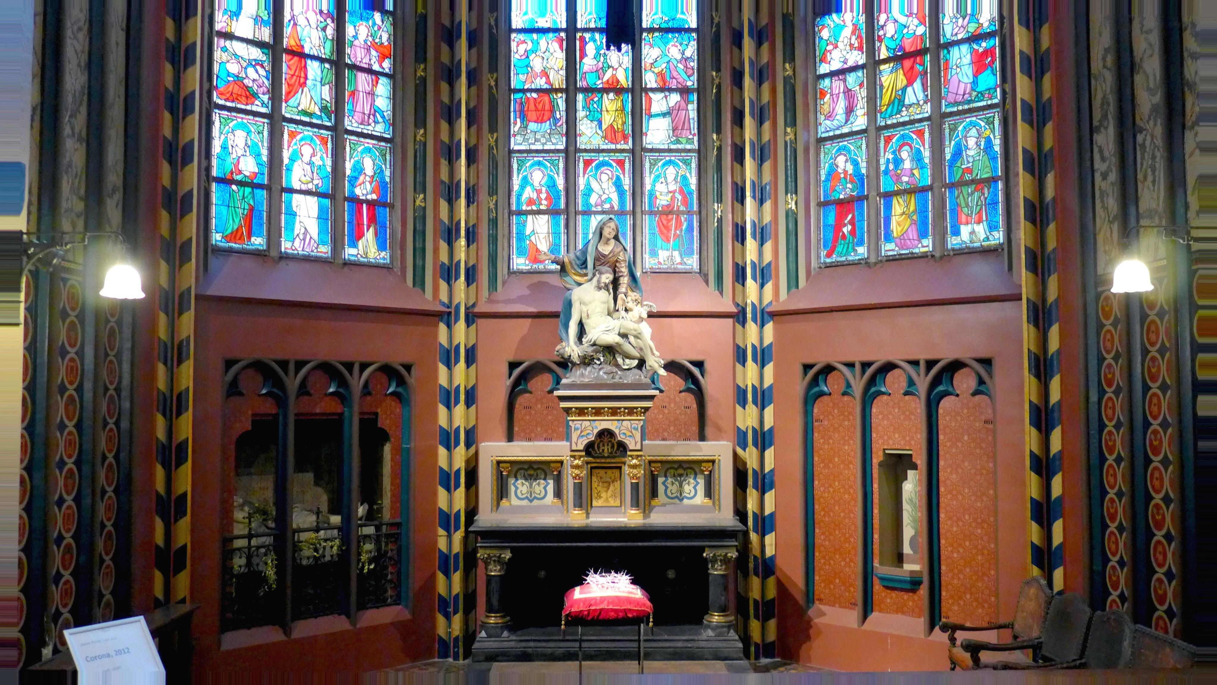 Так, произведение «Успение Марии» Рубенса украшает передний придел храма. Рубенс по-прежнему восхищает своими творениями. В этом Соборе их четыре, а «Воздвижение Креста Господня», «Успение Пресвятой Девы Марии» и «Воскрешение Христа» — написаны специально для Антверпенского собора.