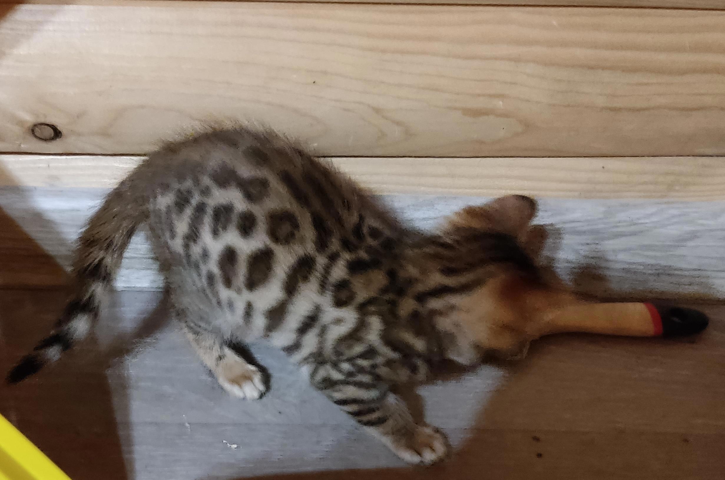 Бессмысленное и беспощадное существо исследует дом, громогласно мяукает и отказывается жрать, хотя заводчица утверждала, что жрёт девонька корм самостоятельно только давай. Впрочем, может быть она ещё не освоилась.