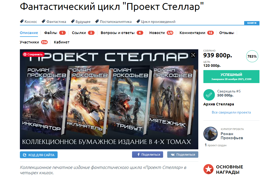 С одной стороны, собрана очень очень большая сумма. Если честно, я рассчитывал на 500-600к максимальных сборов, было приятно ошибиться в большую сторону. С другой стороны, это очень маленький процент аудитории «Стеллара». Примерно 3% читателей оказалась интересна бумажная книга. Очень любопытно, что самые дорогие наборы оказались наиболее востребованными, а самые бюджетные – наоборот, брали хуже всего. Это повод задуматься.