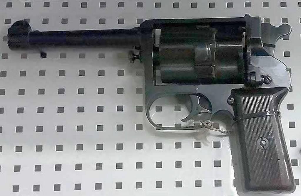 А также он разработал на этом же принципе пятизарядный револьвер калибра 7,62 мм. Такие образцы сохранились до нашего времени. Вот один из них: