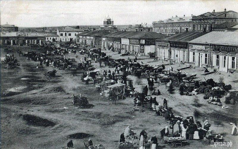 Именно эта часть Зацарицынской Базарной Площади, ныне являющаяся Парком Саши Филиппова, и видна на этой фотографии: