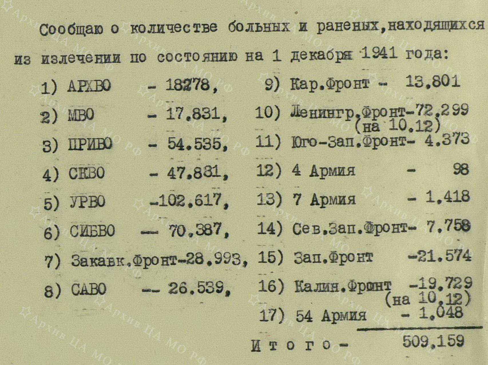 Донесение о раненых в госпиталях РККА: