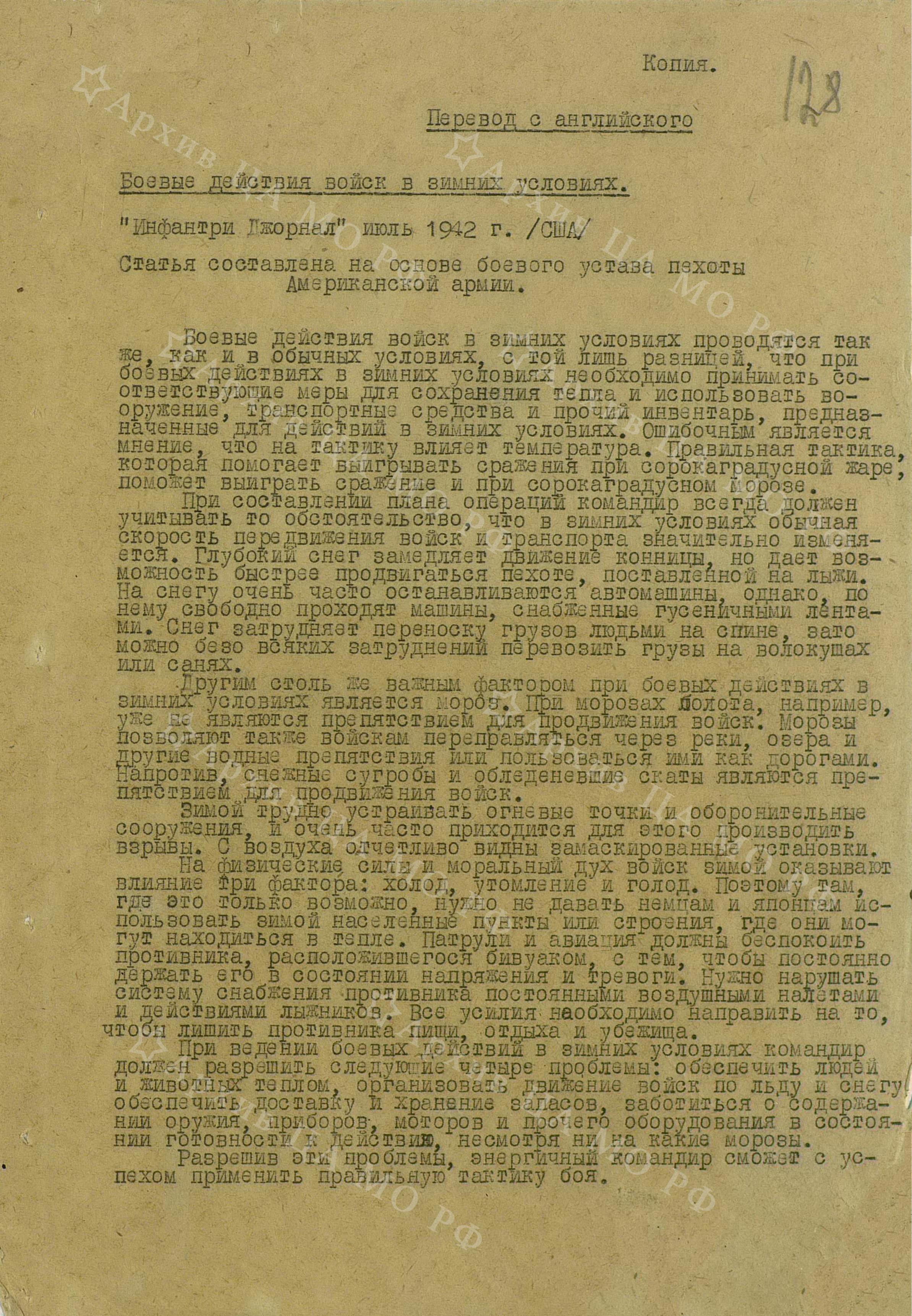 Июньский номер 1942 г. Infantry Journal есть в сети, и прошу читателей меня извинить, за то что не стал копировать и вставлять в блог оригинал статьи из журнала.