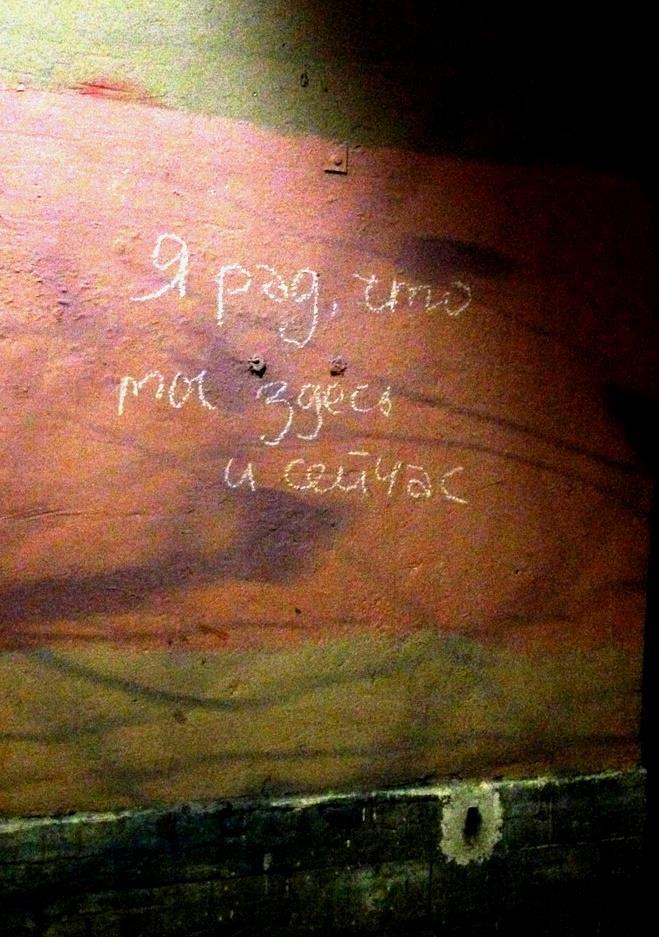 Она не спеша вышла из метро, заинтересованно глянула, что сегодня продают выстроившееся в ряд бабуси – ассортимент менялся в зависимости от времени года: ягоды, яблоки, зелень, грибы, цветы, капуста, носки. Она никогда ничего у них не покупала, но этот импровизированный базарчик радовал взгляд своей цветовой гаммой. Привычно и ловко лавируя между людьми, лавиной валившими к метро, свернула на одну из улиц, ведущих к парку, за которым и стоял её дом. Тёмно-синяя вуаль раннего осеннего вечера уже окутывала город. В еще прозрачной полутьме плавали тусклые желтки уличных фонарей. Она шла привычной дорогой, почти не глядя по сторонам, как вдруг её взгляд случайно мазнул по очередной арке, ведущей во двор стоящего на улице дома. На стене арки, той, что была как раз по ходу её движения, белела в сумраке старательно выведенная мелом надпись –«Я рад, что ты здесь и сейчас»