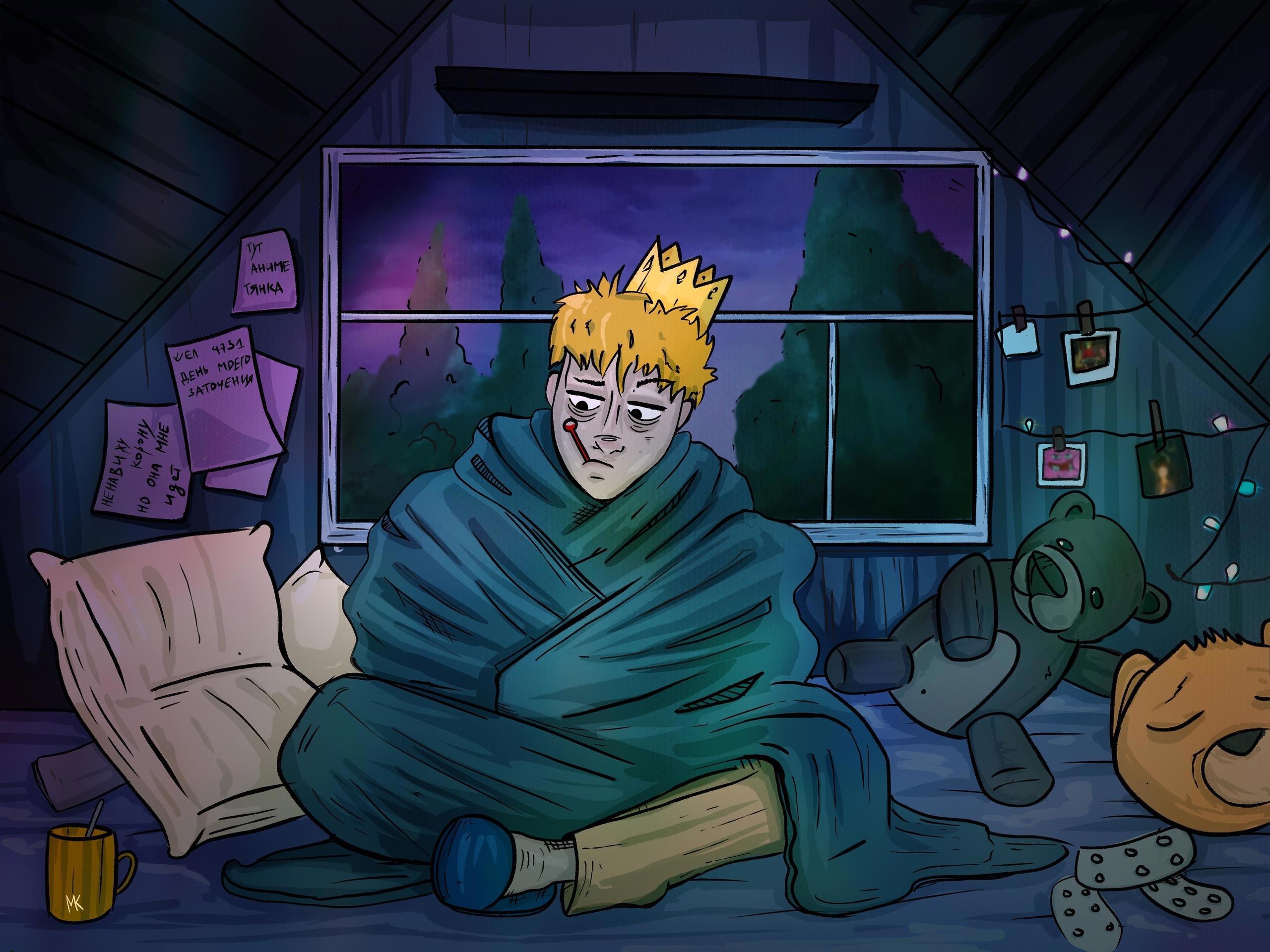 Вот эта одна из важных для меня. Мика простудился, но корона шла ему к лицу.