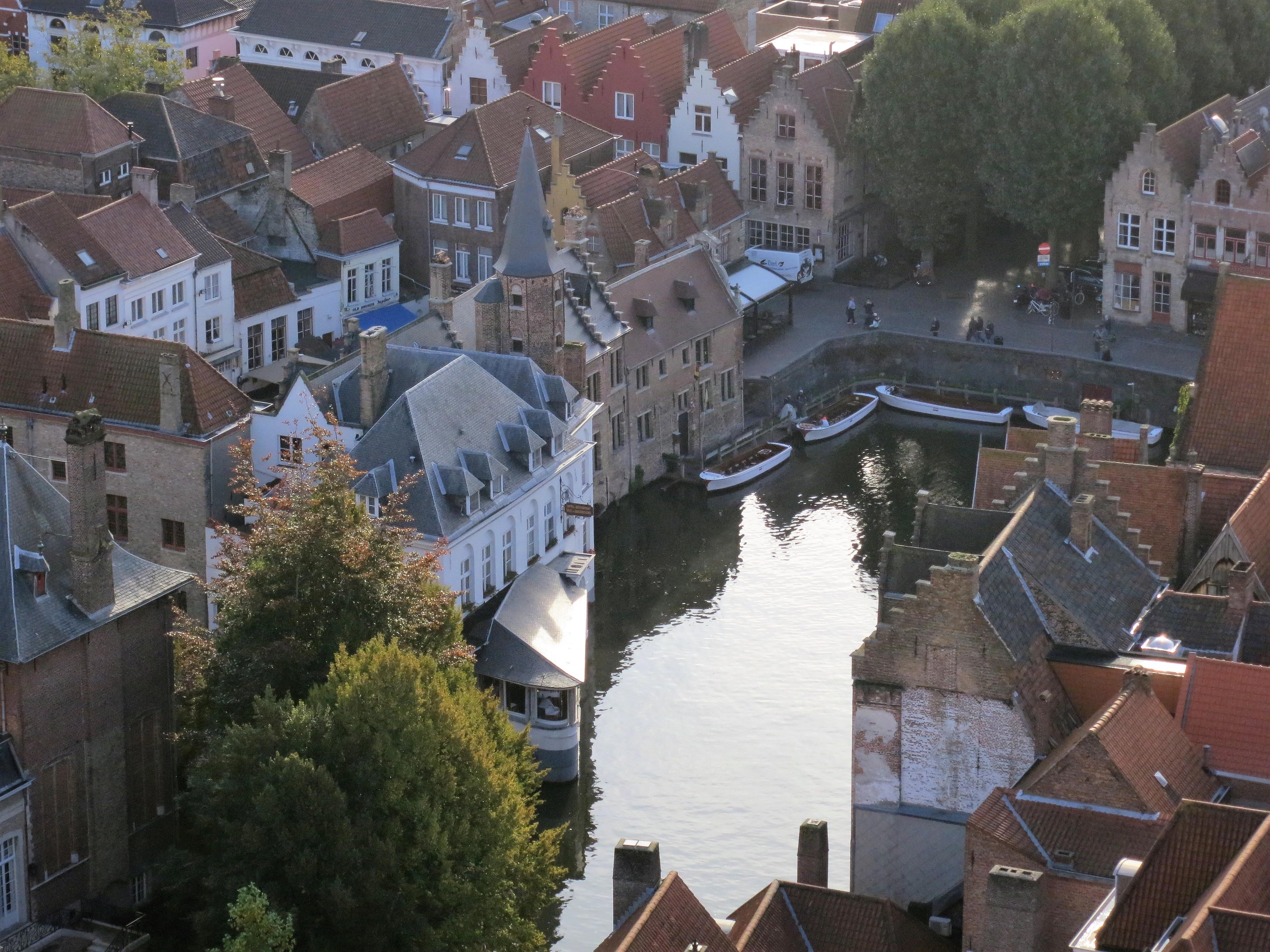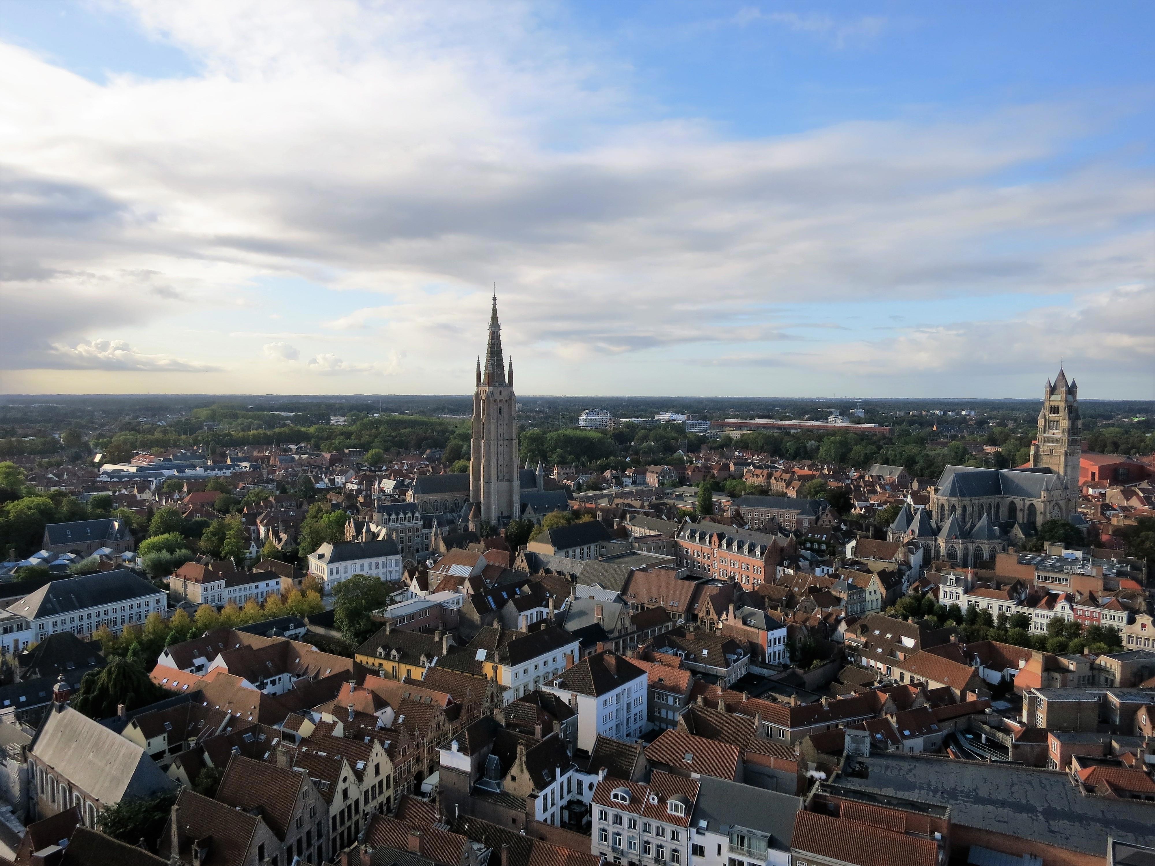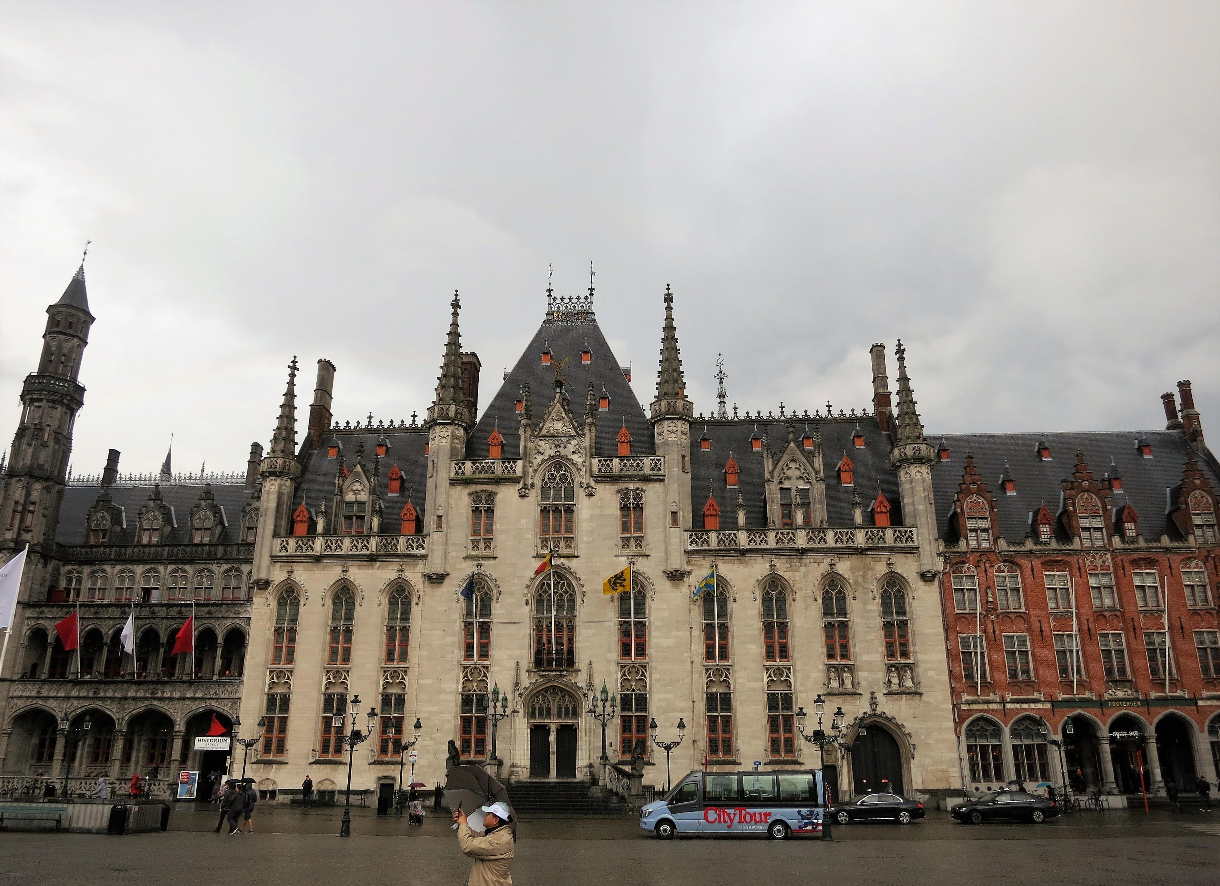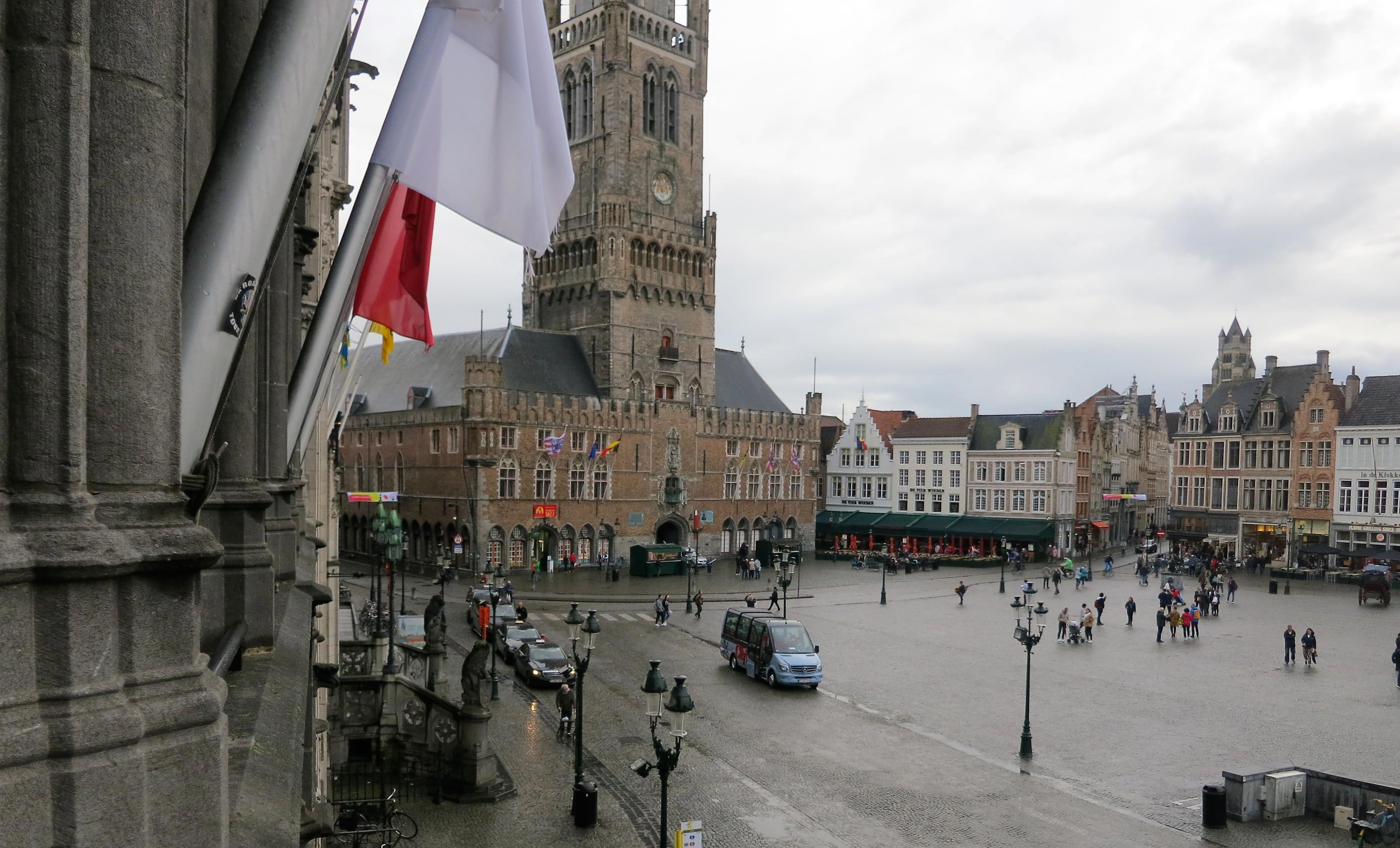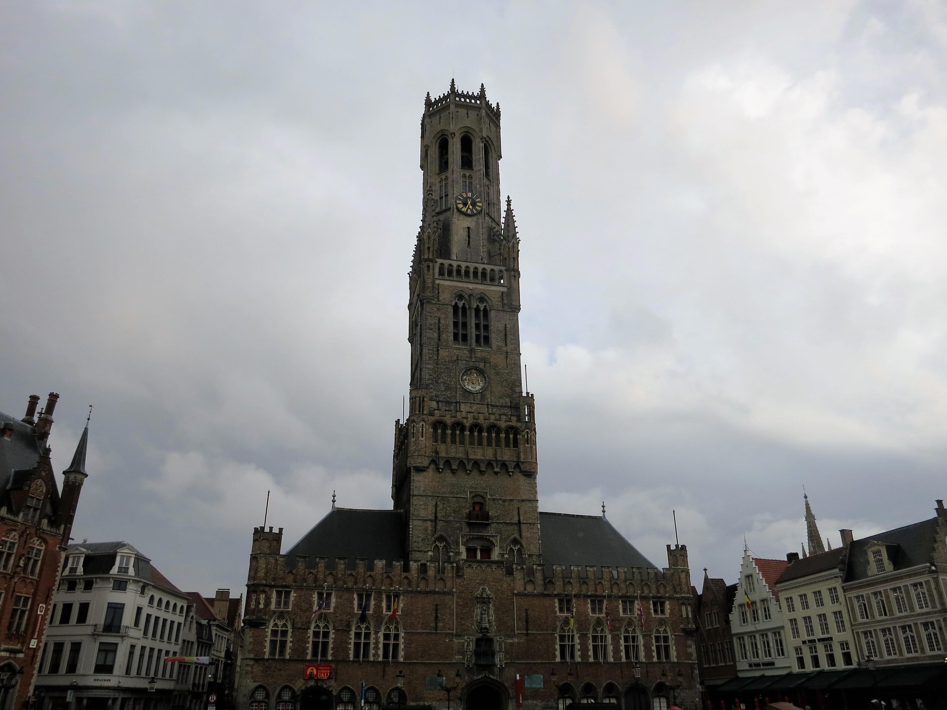 На первых фото – Рыночная площадь и возвышающаяся над ней башня Белфорт (средневековая колокольня; ранее выполняла и дозорную функцию), с высоты которой открывается прекрасный вид на город. Ради него и стоит одолеть 366 ступенек по узкой лестнице. Лифта, как на такую же башню в почти соседнем Генте, нет, так что подъем – только пеший.