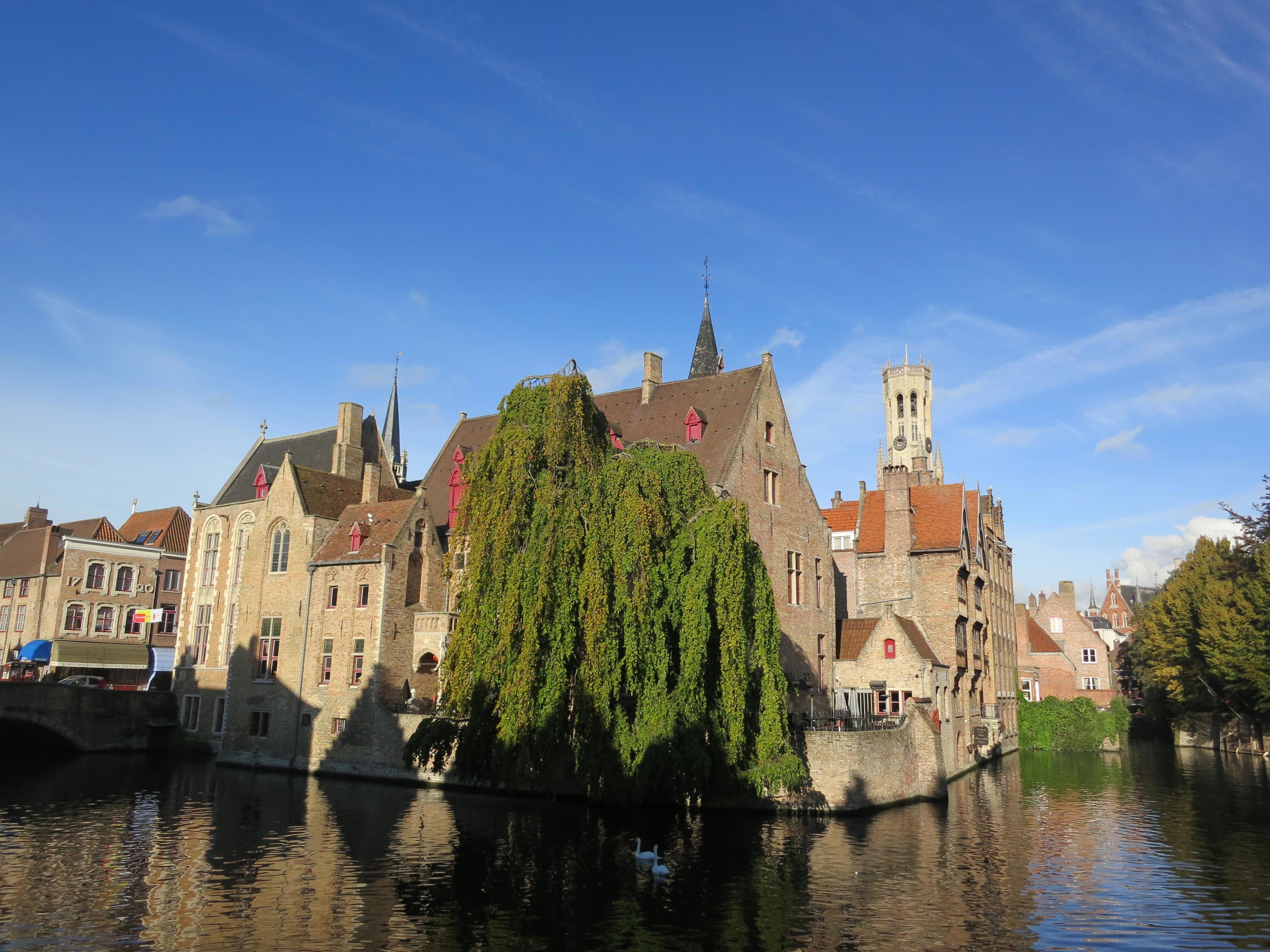 название известного фильма «Залечь на дно в Брюгге» (2008 год), в котором хорошо показан город. И ходить можно много – город стоит того. Брюгге – один из немногих городов Европы, донесших до нас первозданность Средневековья. Его не перестраивали, войны, в том числе и обе мировые, обошли город стороной. Он как будто целиком всплыл из волн истории.В средние века Брюгге являлся центром торговли в Северной Европе и на XII – XV века пришелся расцвет города. Затем, ввиду и засорения каналов, соединяющих город с морем, и внутренних раздоров, торговое счастье, богатство и слава покинули его. Развитие города остановилось и он так и застыл в том виде, каким был около 500 лет назад. Сохранились и каналы, по ним можно поплавать. Благодаря каналам город иногда называют «Северной Венецией». Исторический центр Брюгге включен в список Всемирного наследия ЮНЕСКО,