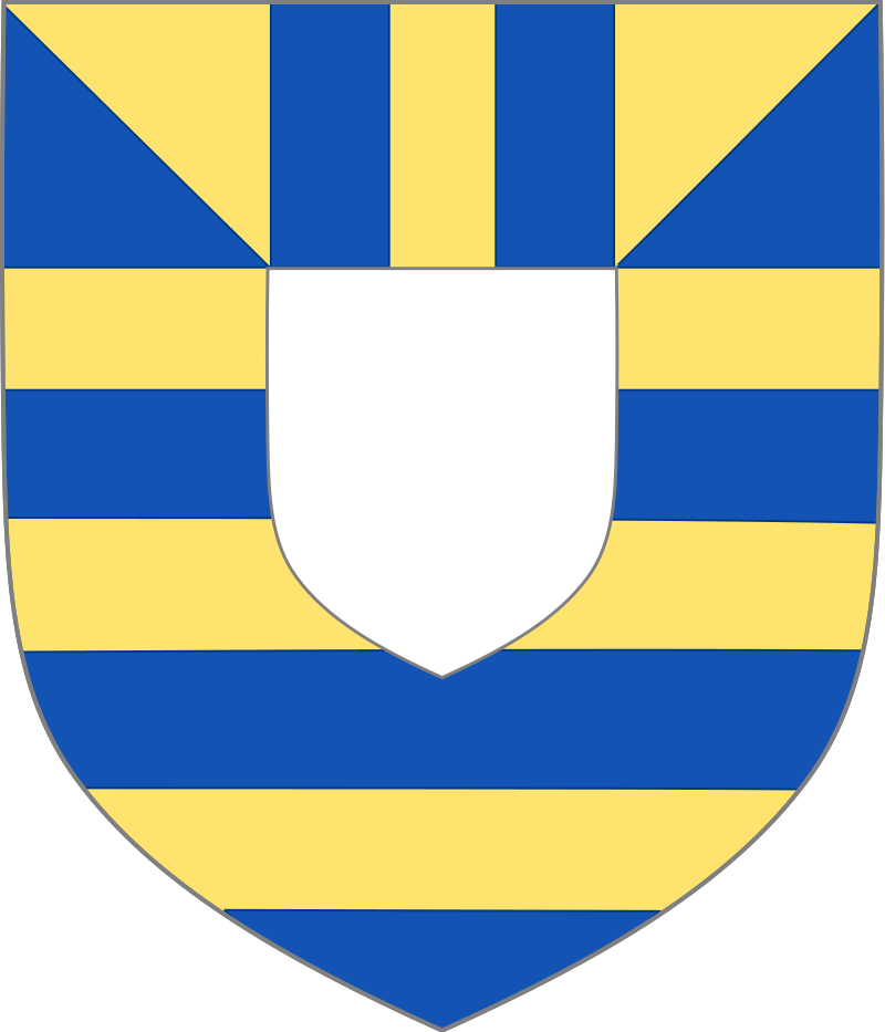 Гербы Мортимера: Барри ор и лазурный, на главном из первых двух поддонов между двумя гироскопами второго в целом серебряная накладка.