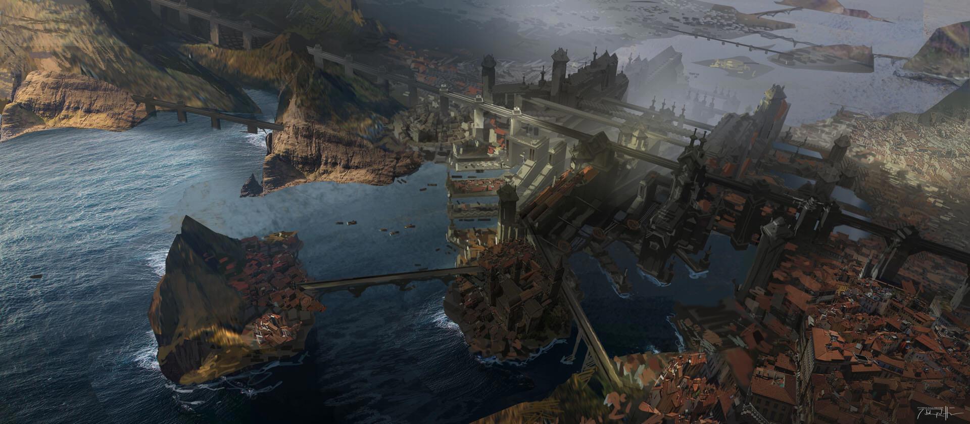 Они выстроили поселение по обе стороны от пролива, разделяющего два континента, и стали местным аналогом Сингапура. Деньги от торговли текли рекой, город стремительно развивался, управляемый купцами, разрастаясь во все стороны, и непрестанно двигая прогресс всей Рунтерры.