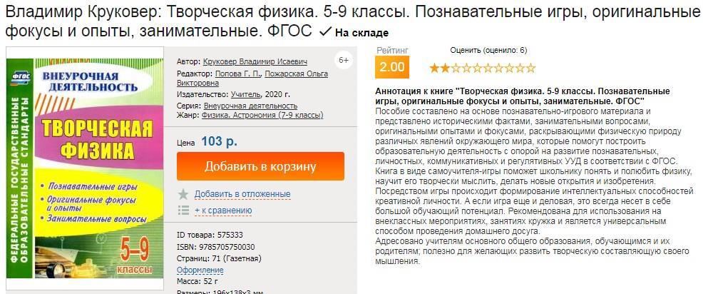 Множество работ в разных сферах: кинология, шахматы, кулинария, диетология, сексуальное воспитание, пчеловодство, охота... И много чего ещё... Но, так как я сама грёбаный технарь, меня привлекло пособие по физике. Если его можно так назвать. Творческая физика. Ха. Правильнее - фантастическая физика. Я не буду цитировать всё, чтобы не слишком занудствовать. Но, вот, например: