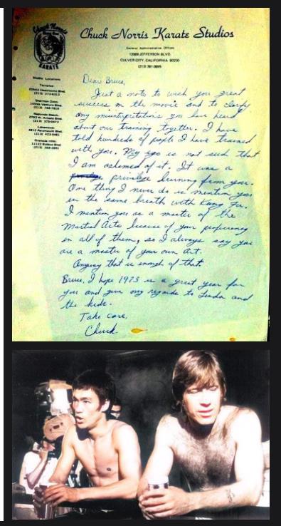 Чак: «Брюс научил меня некоторым своим приемам кунг-фу, и я показал ему несколько ударов тхэквондо. Примечательный анекдот.