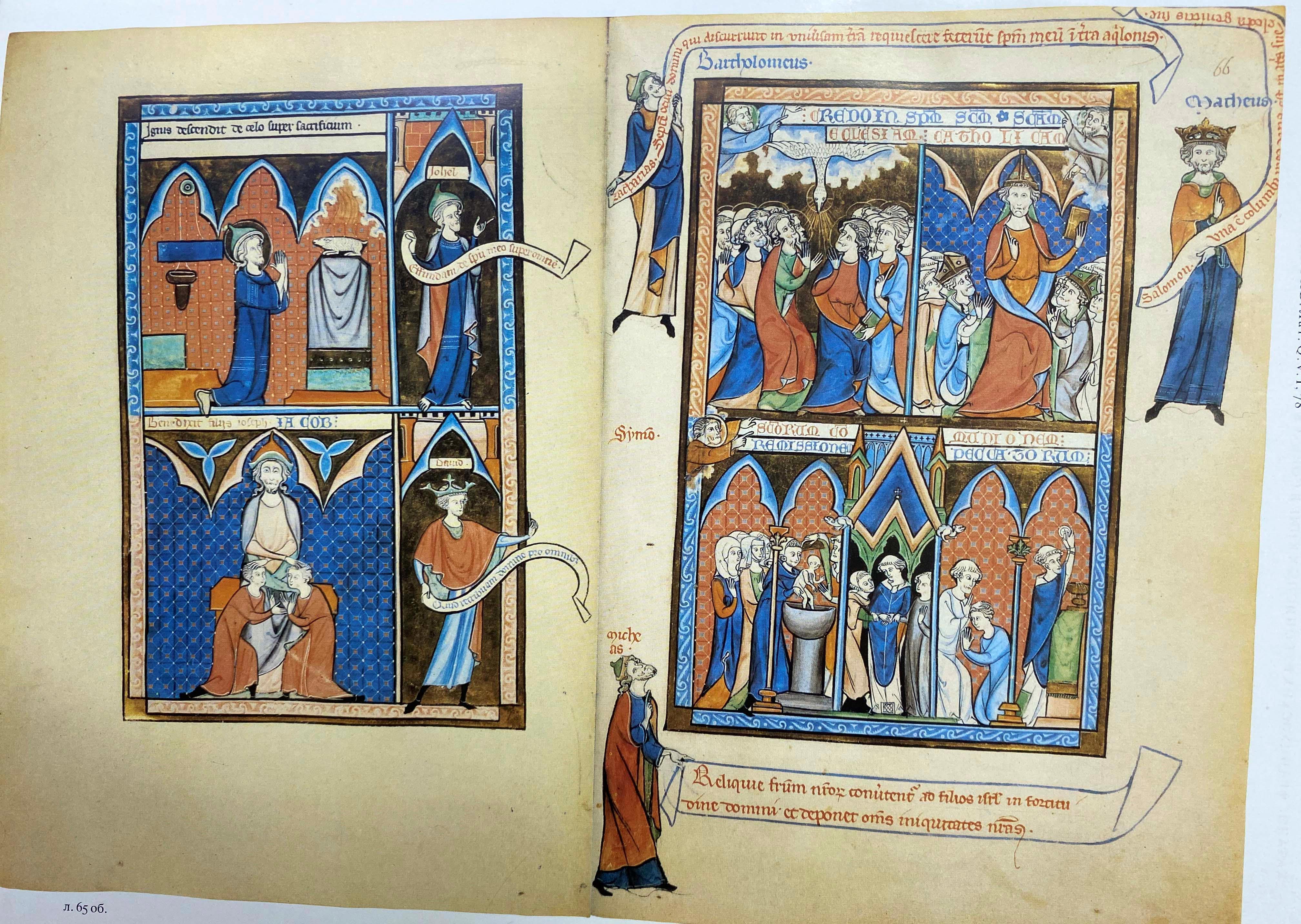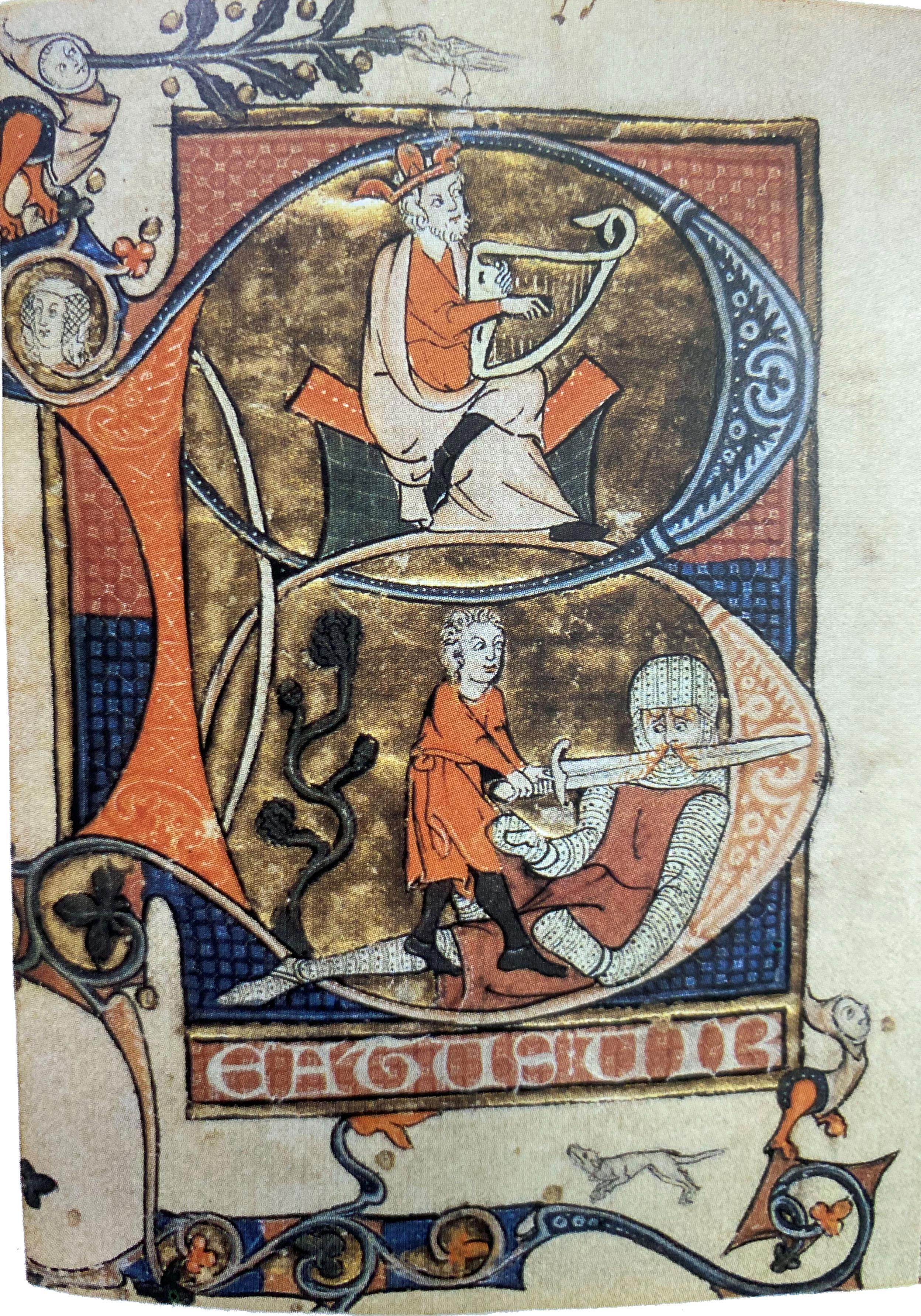 Между прочим, сравните, как похоже и вместе с тем по разному через десятилетия в буквице В изображается история царя Давида (начало XIII века и конец).