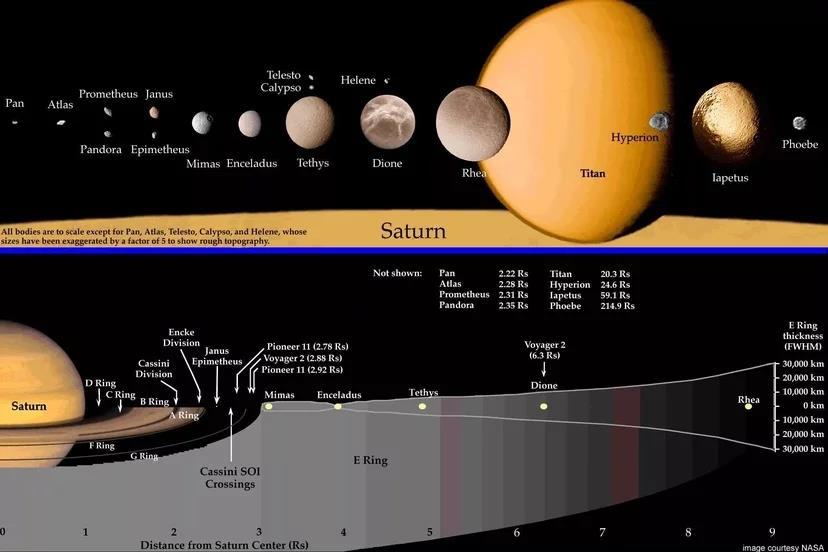 Спутники Сатурна: Титан, S/2004 S 20, Кольца Сатурна, Энцелад, Мимас, Япет, Пандора, Тефия, Диона, Рея