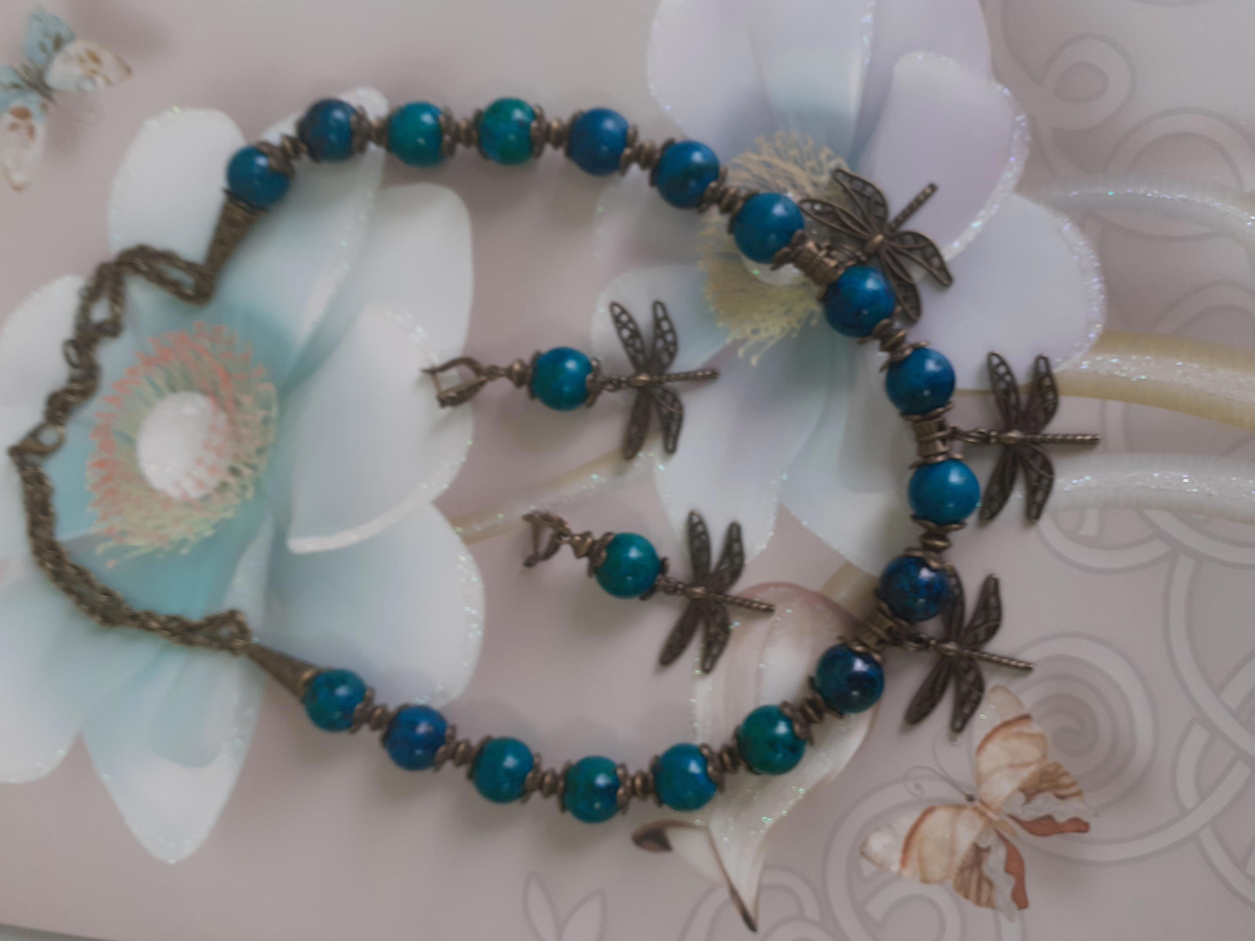2Хризопразы,бронзовая фурнитура -Стрекозы