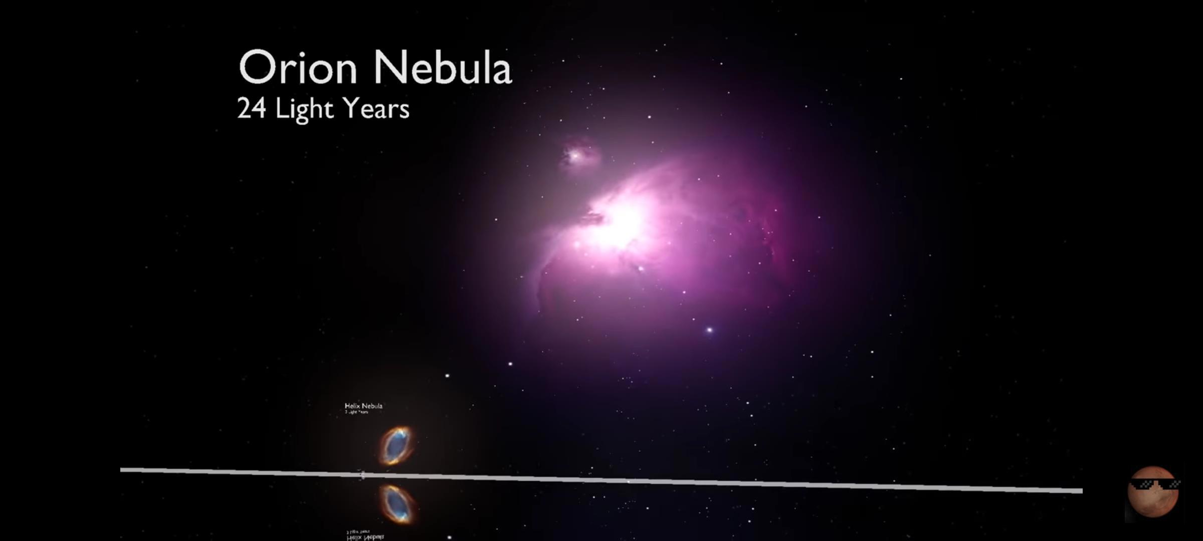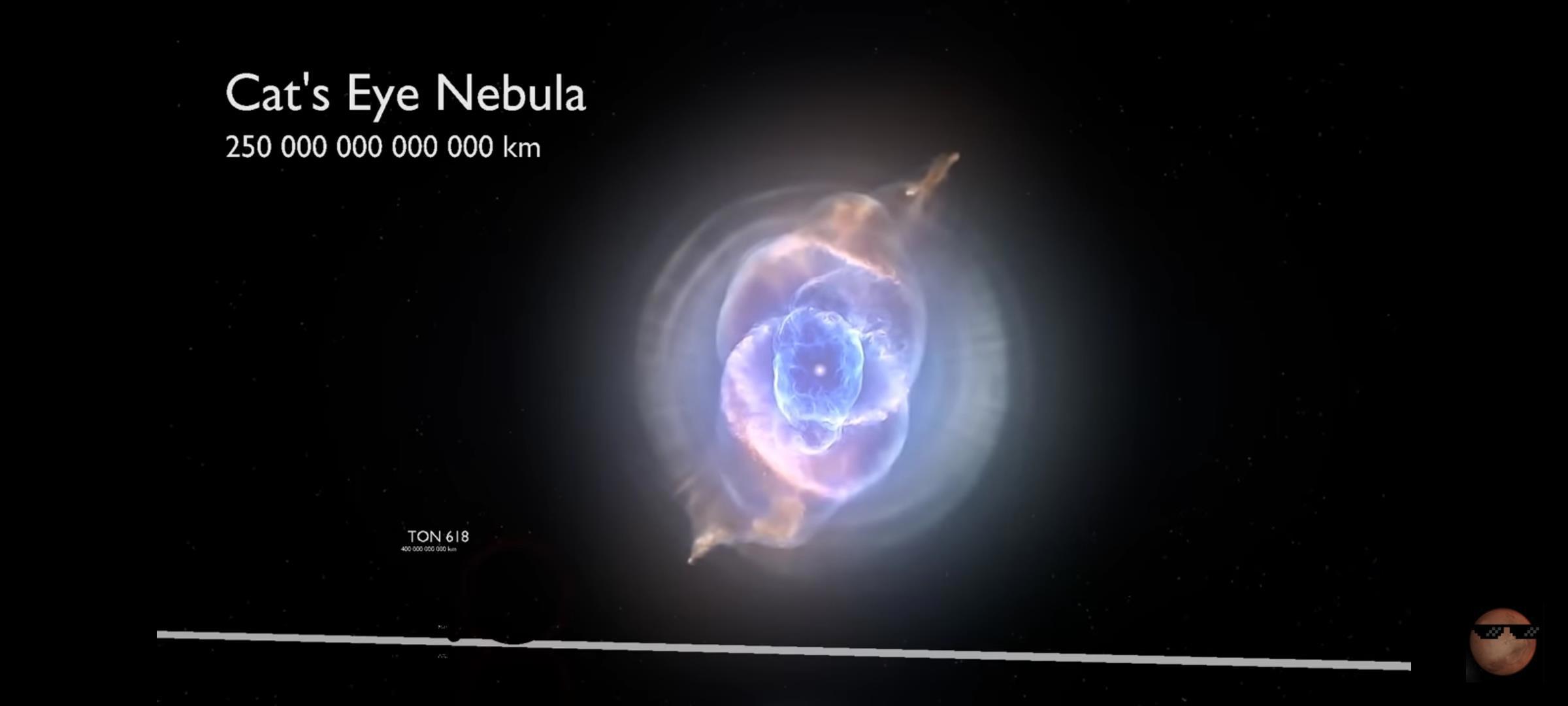 Сравнение размеров Звезд, Звездных Скоплений и облаков, Туманностей, Галактик, Метагалактик и Самой ее Величество Вселенной.