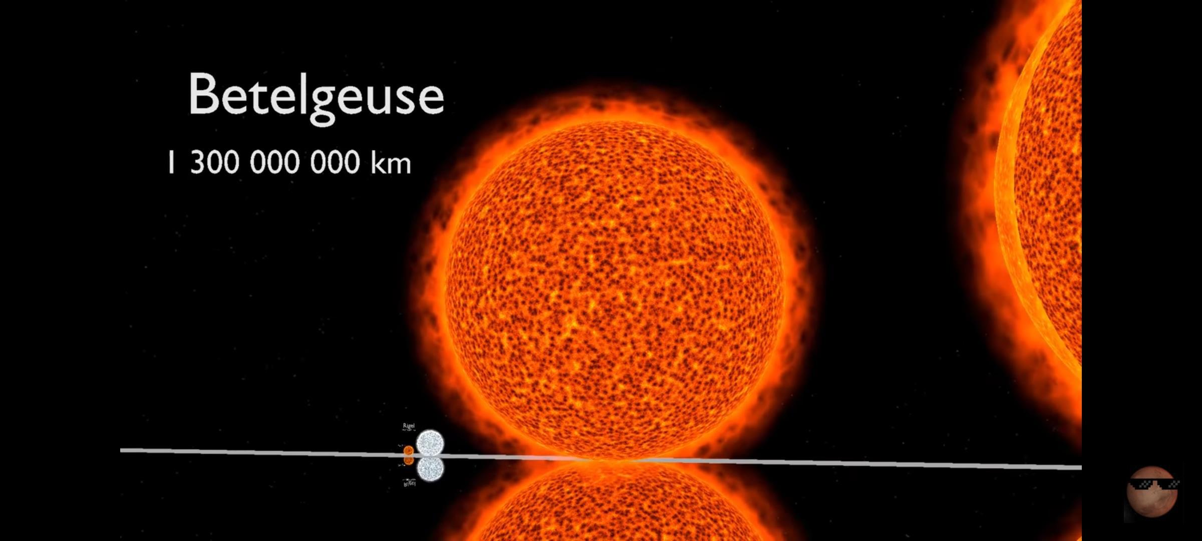 Радиус звезды равняется 600 диаметрам Солнца. Она в 1400 раз больше его. А масса равна 20 массам Солнца. А объем в 300 миллионов раз превышает объем светила Земли.