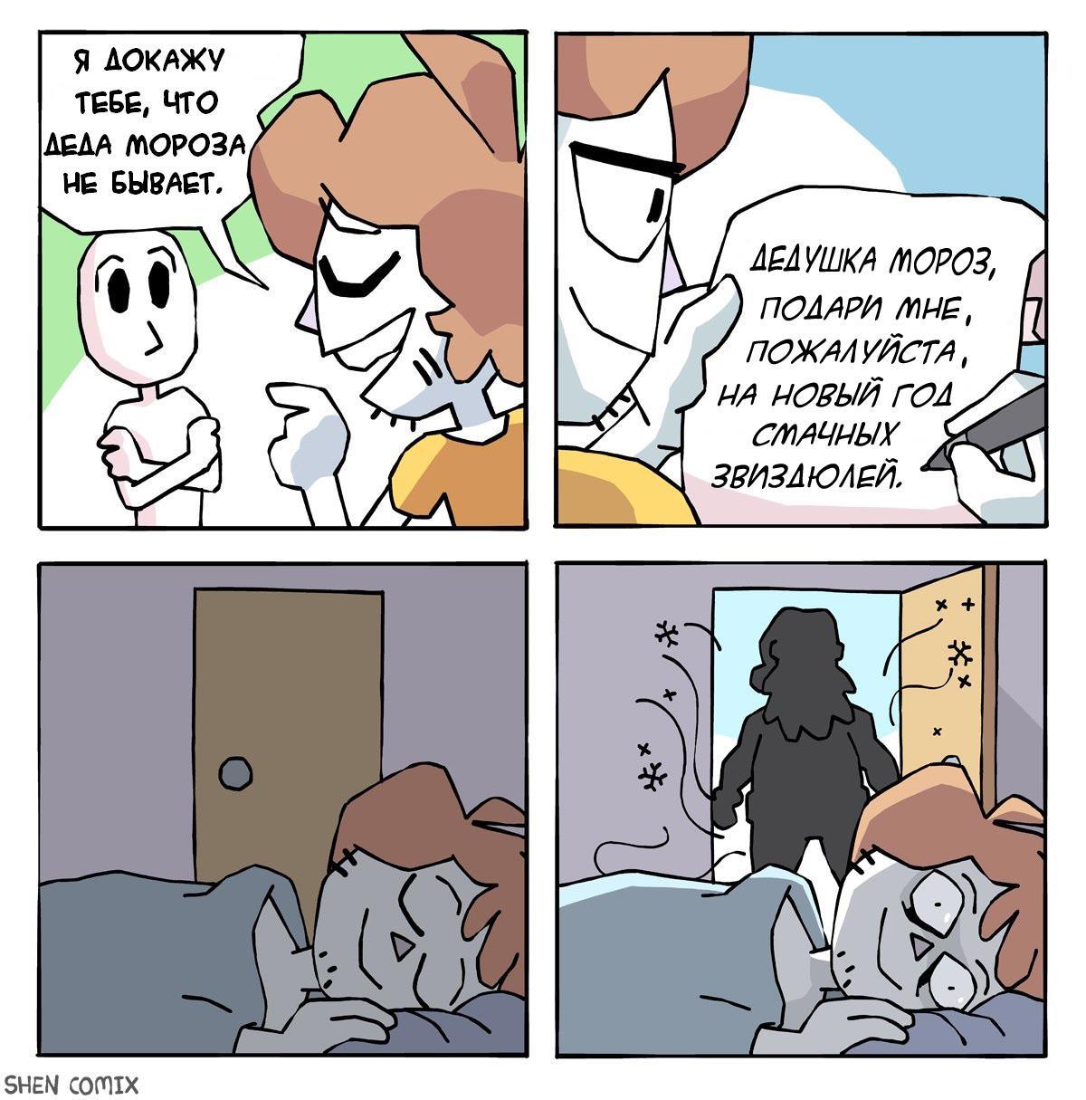 Не так часто адаптирую комиксы, но тут напрашивалось. Фигура в дверном проёме, конечно, Санты, а не Деда Мороза, но образы за годы настолько смешались, что вполне сойдёт %)