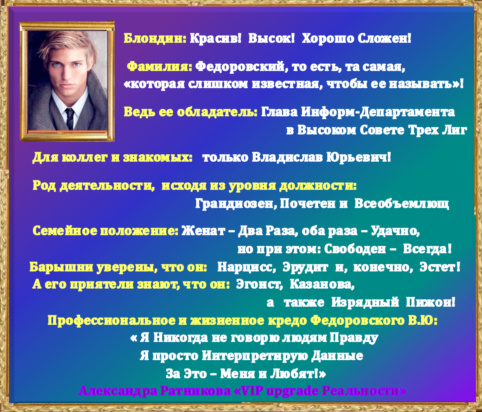 – Как отказаться от такого шанса?! Когда взгляд загадочного блондина