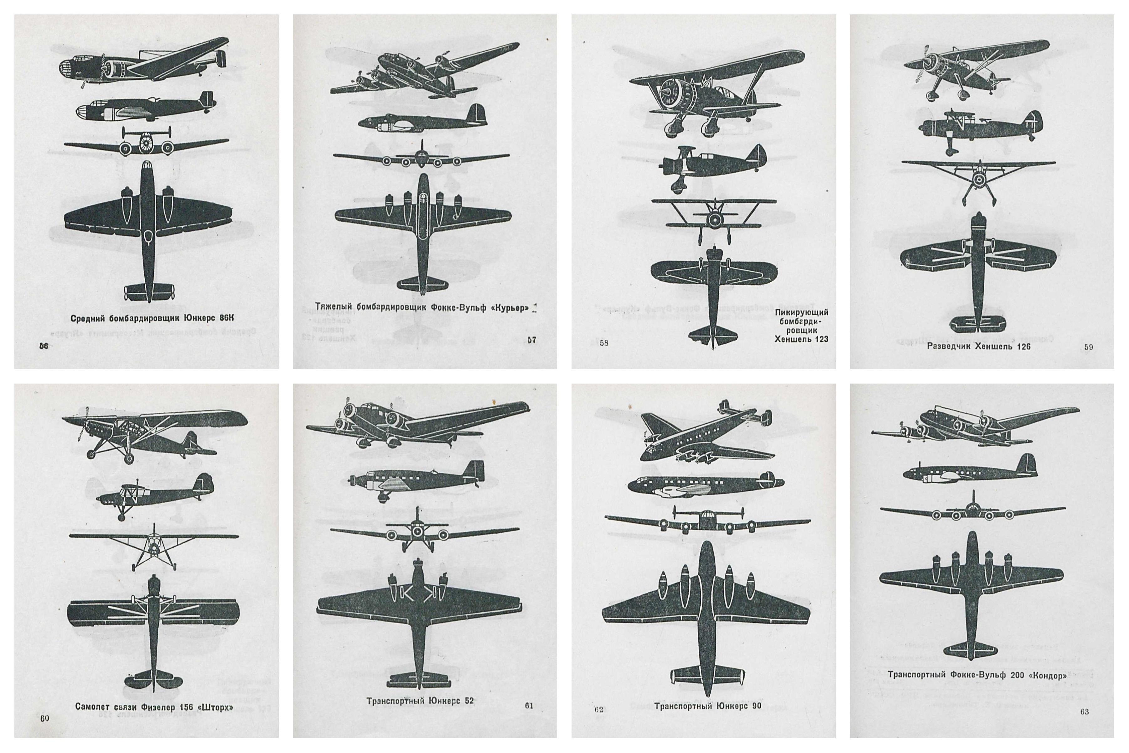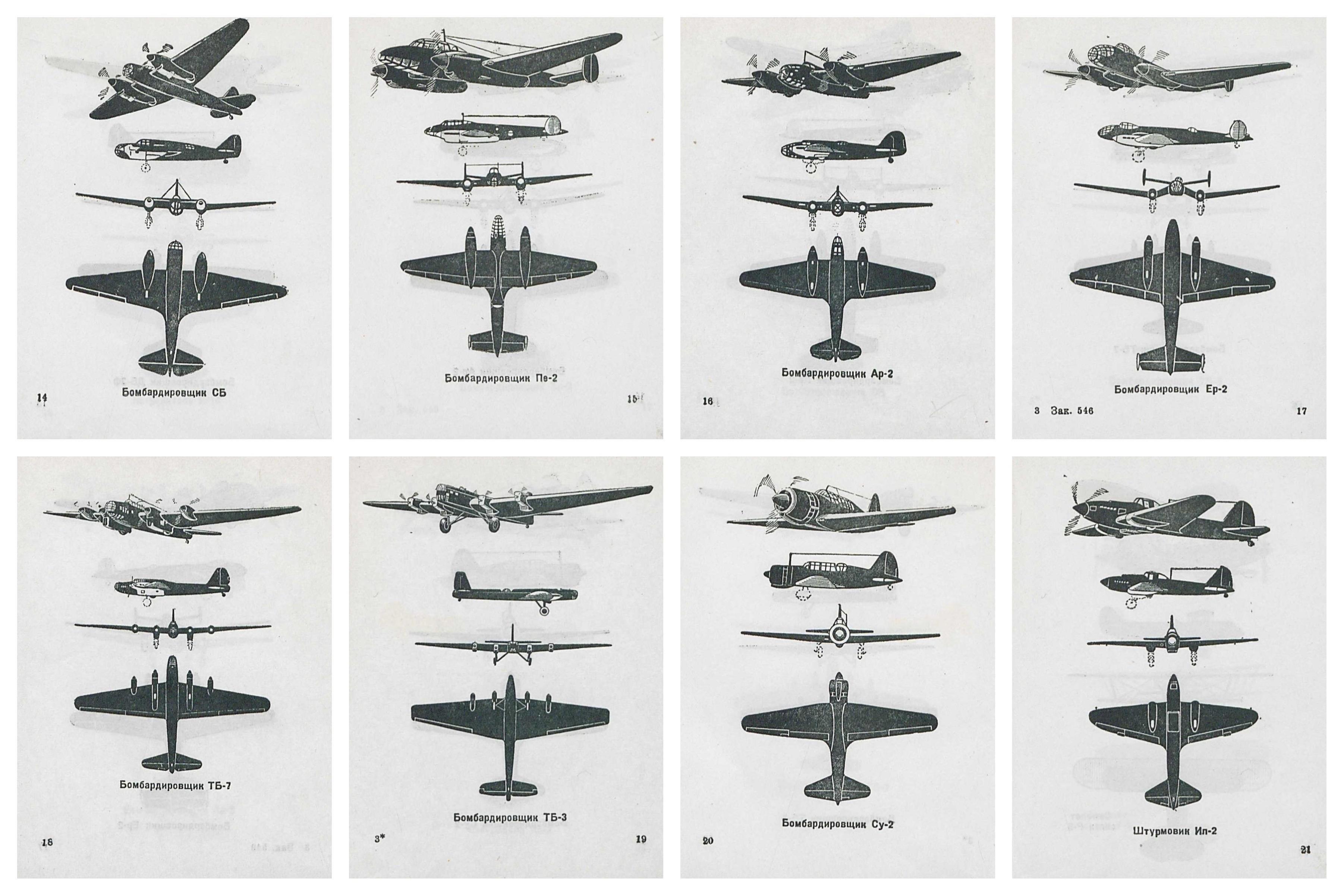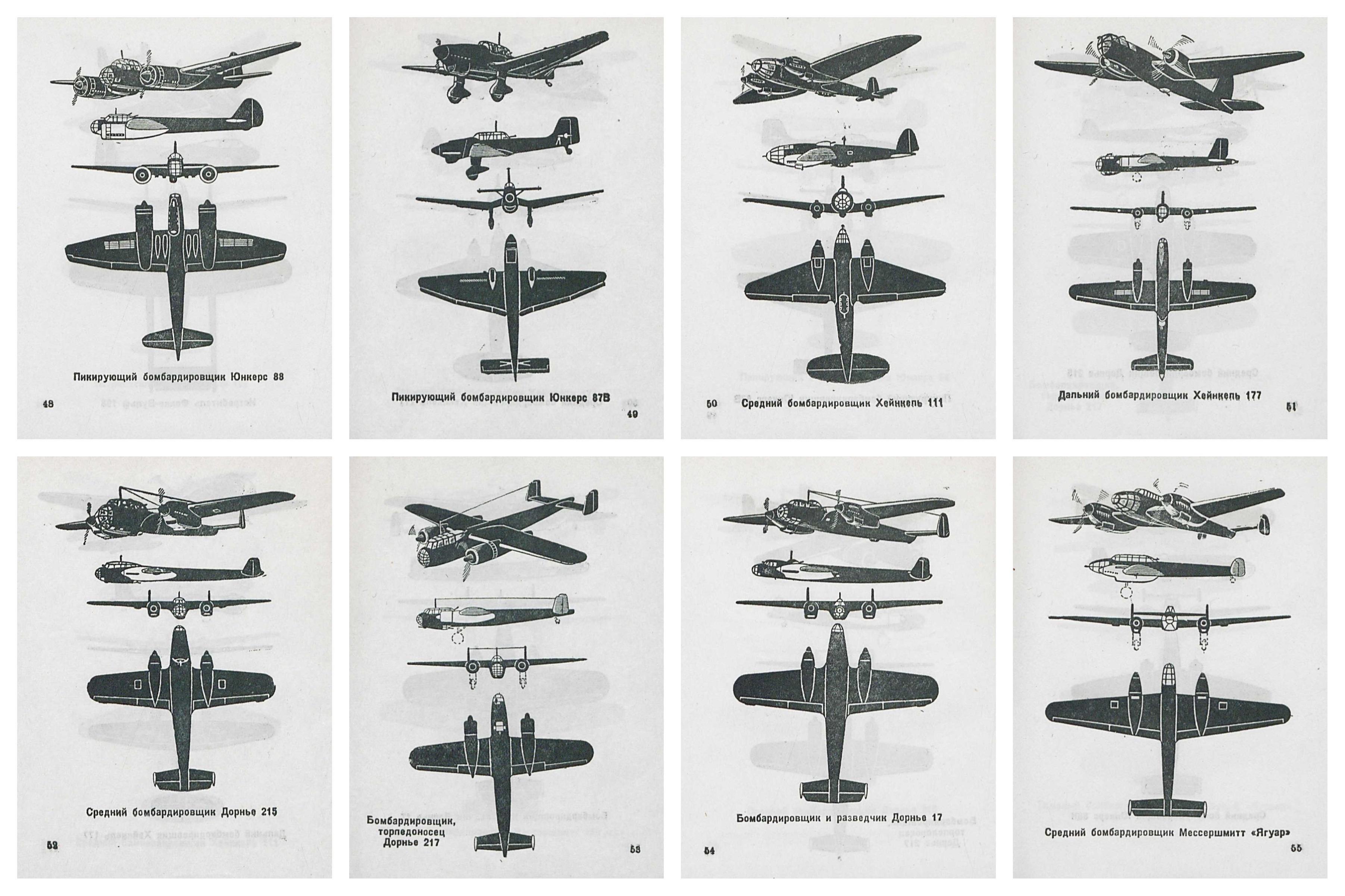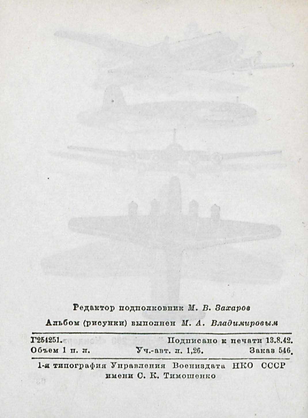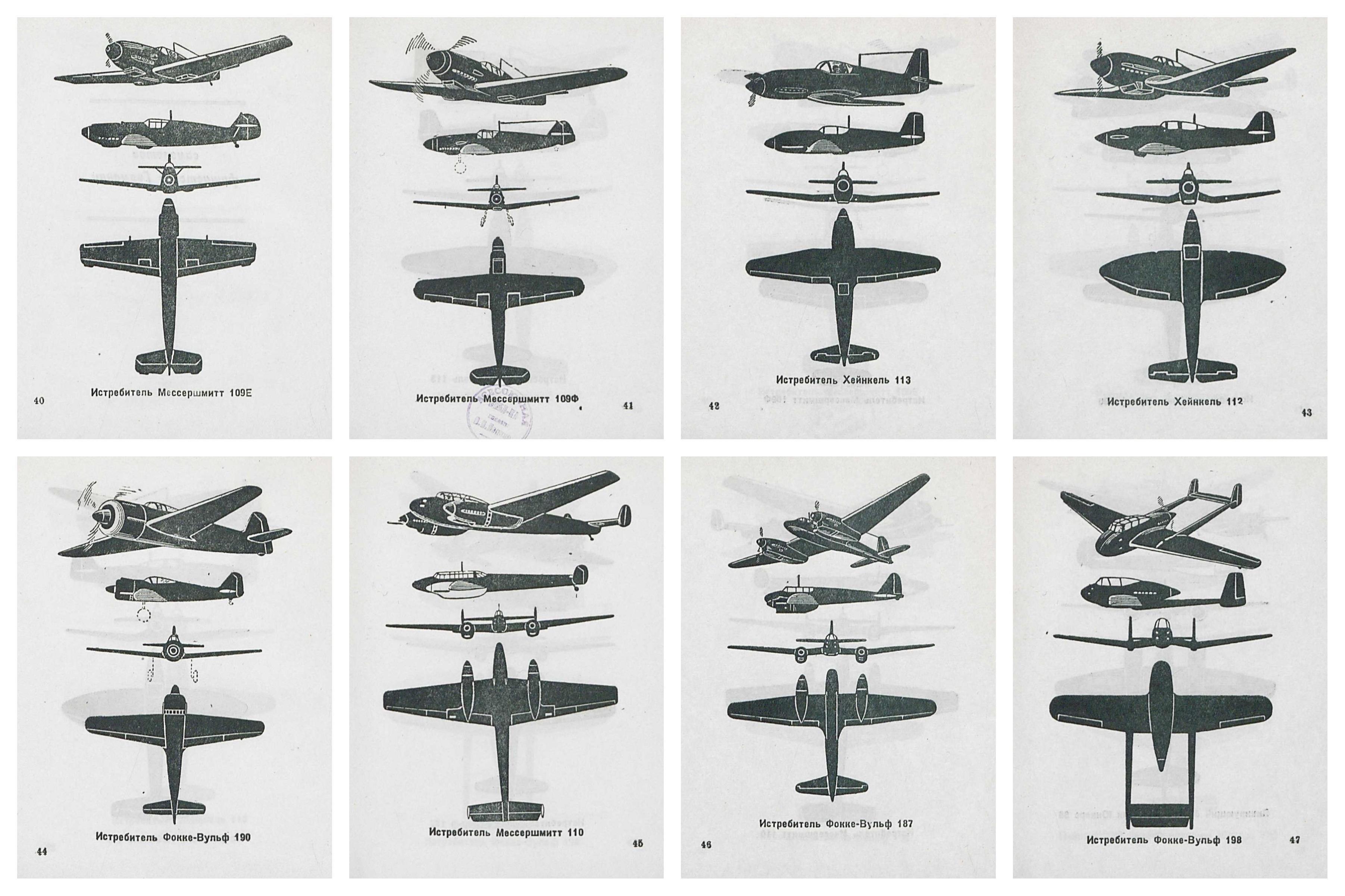 1942. Силуэты самолётов СССР, Англии, США и фашистской Германии.