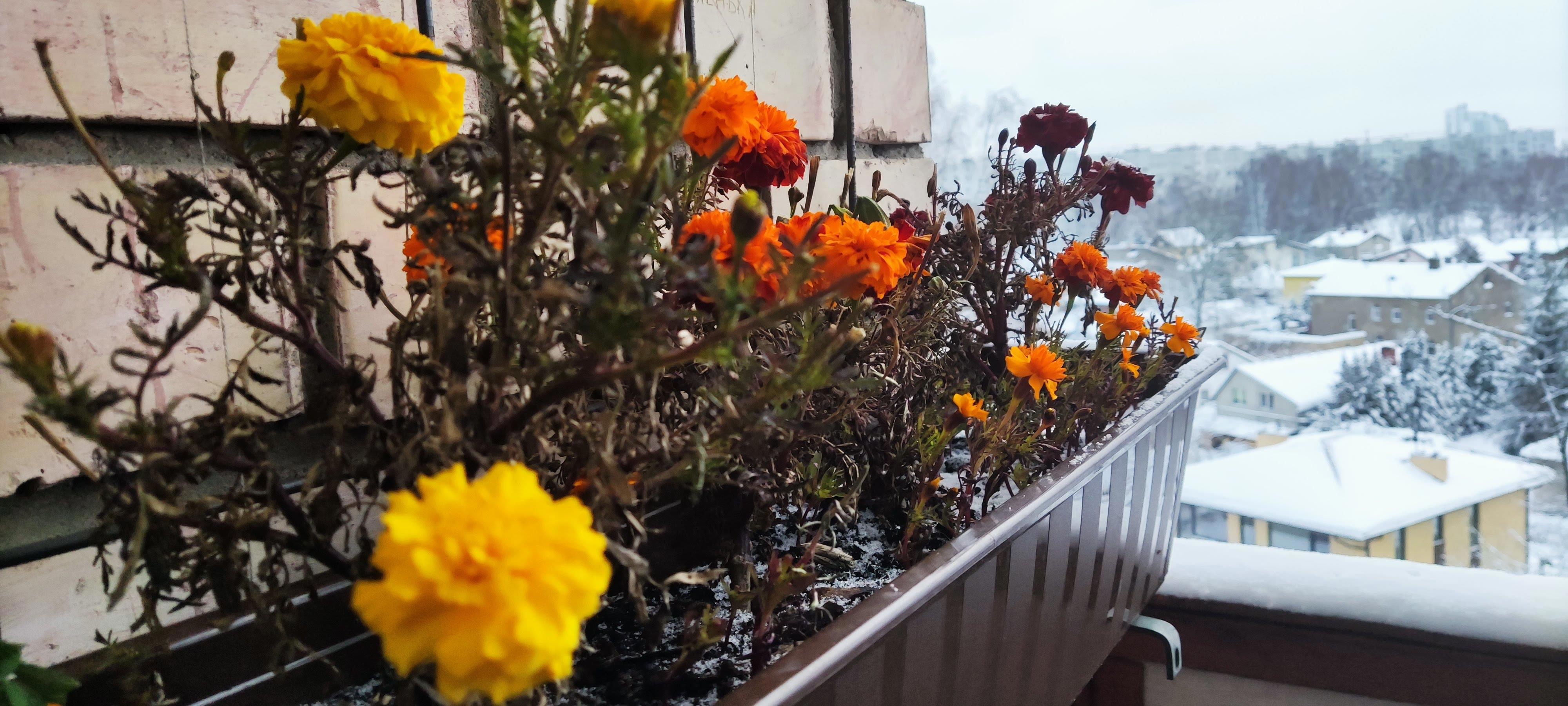 Автор: Елена КорджеваСижу дома, любуюсь бархатцами в снегу. На улице минус сколько-то, но они еще держатся!
