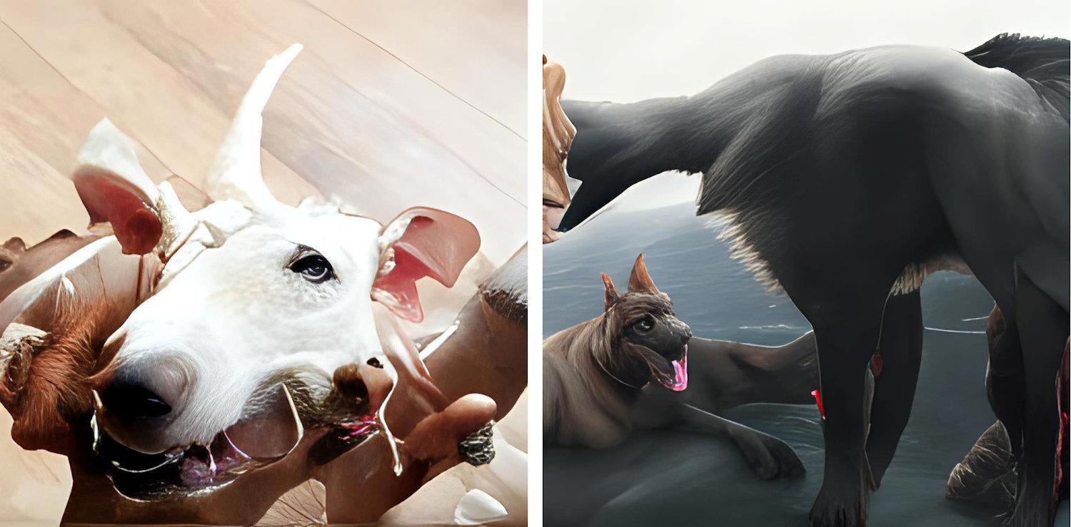 Результатом я, в принципе, осталась довольна – такая себе фантасмагория изменённого сознания. Осмелев, я продолжила эксперименты с простыми запросами. Что может быть проще трёхголовой собаки?