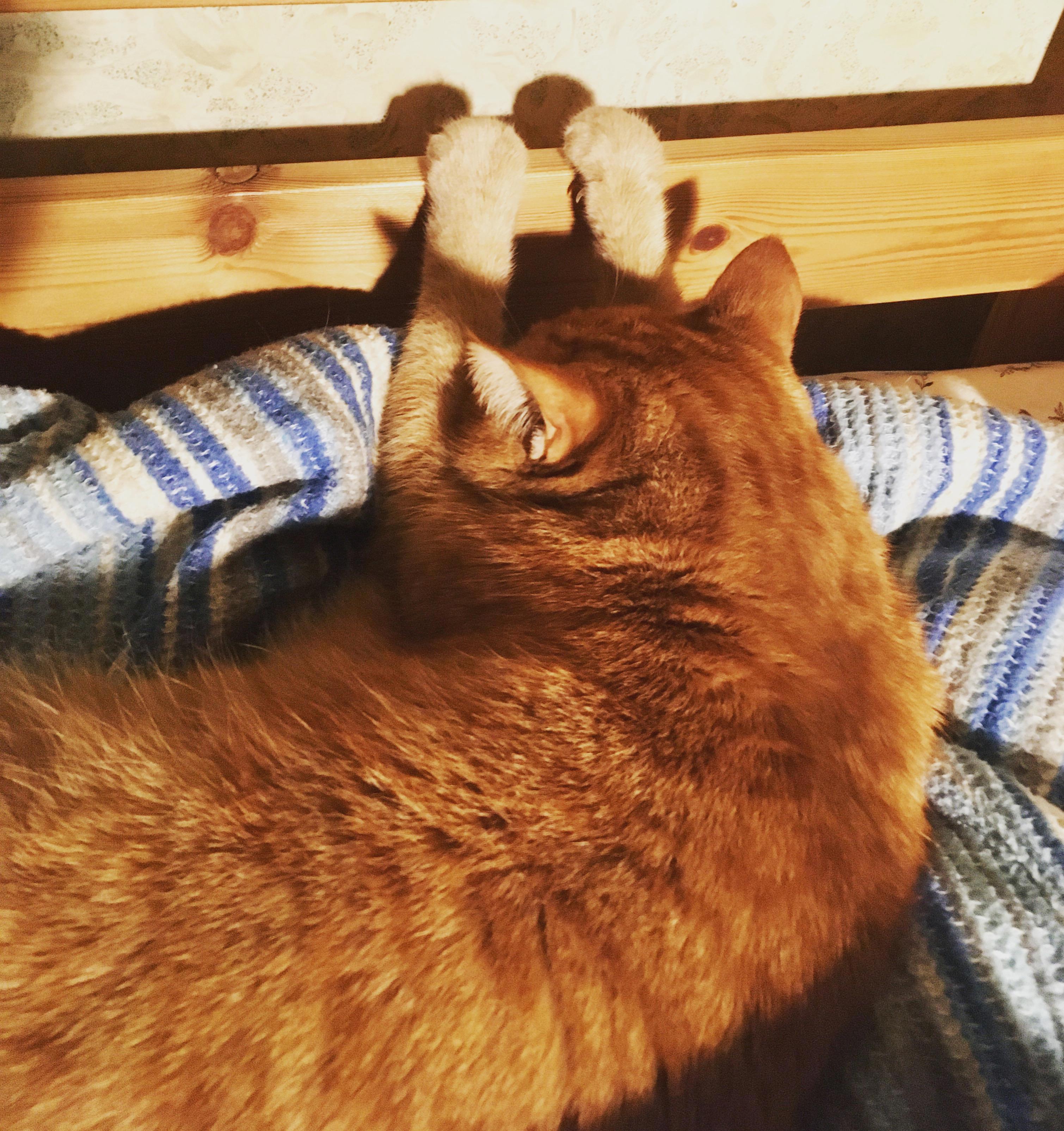 И воскресенье. Можно валяться в тёплой кроватке бутербродной начинкой между матрасом и одеялкой, только встрепанная голова наружу, на подушке. Голове хорошо, она там не одна. К ней привалилась тяжелая шерстяная рыжая тушка и на всю кошачью мощь заводит своё мурчало. Прилепляешь ухо втуда, в это теплоё, мягкое, как в детстве в раковину, привезенную отцом с Черного моря, и этот рокот начинает вливаться в тебя океанским прибоем - мгрх-ррррр… мгрх-ррррр… мгрх-ррррр…