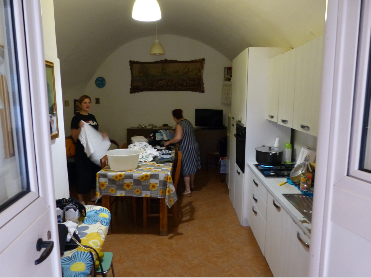 Кондиционеры мало кто себе может позволить, или, может быть, городские власти не разрешают уродовать исторический облик квартала этими металлическими коробками, поэтому через колышушиеся ветром занавески можно увидеть обитателей этого района. Ни в одном из домов мы не приметили прихожей. Сразу за входом просматривалась маленькая гостиная или кухня-столовая, где за столом сидели почтенные итальянки с домочадцами. Казалось, что нам по большому блату дали заглянуть в их частную жизнь, знакомую по итальянскому кинематографу пятидесятых-шестидесятых годов XX века. И эта кинематографичность просто потрясала!