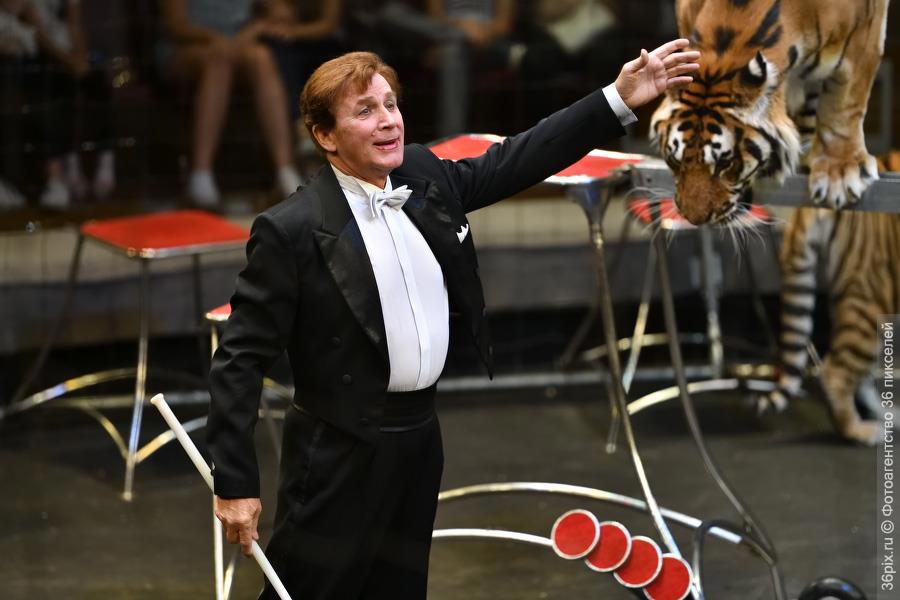 «Чтобы у тигров не было соблазна устраивать дебоши в клетках, надо их как следует погонять на репетиции, — говорит Николай. — Устали, покушали, поспали… И так каждый день. Тигры вообще от природы ленивые животные, хотя работать в поте лица никто из живых существ не хочет. И еще тигры с трудом переносят одиночество, когда не с кем словом «перерыкнуться». Начинают хандрить, кушают мясо без аппетита, а это, естественно, сказывается на работе. В возрасте до полутора лет, тигрята привыкают к людям, к манежу, к кличкам, и к простым командам таким как: «место», «домой», «ко мне». В это время дрессировщики выводят тигрят поиграть на манеже и присматриваются кто к чему больше тянется. Кому-то нравится прыгать в игре, кому-то вставать на задние лапки, а кто-то любит ласкаться на ручках у человека. В полтора года, по этим наблюдениям уже начинается отработка трюков. Тигрята которые любили прыгать - прыгают с тумбы на тумбу и через другие препятствия. Тигрята которые любили вставать на задние лапки - учатся ходить. Те что не слазили с человеческих рук, становятся партнерами по контактной работе. А есть еще статисты которым не дается ни один серьезный трюк - они на манеж выходят для количества и самое многое что могут там сделать на выступлении - это полежать в номере «ковер» - повернуться с одного бока на другой. Но и таких животных в цирке держат и ухаживают за ними на равных. Первое выступление на публике у тигра случается в возрасте два года».