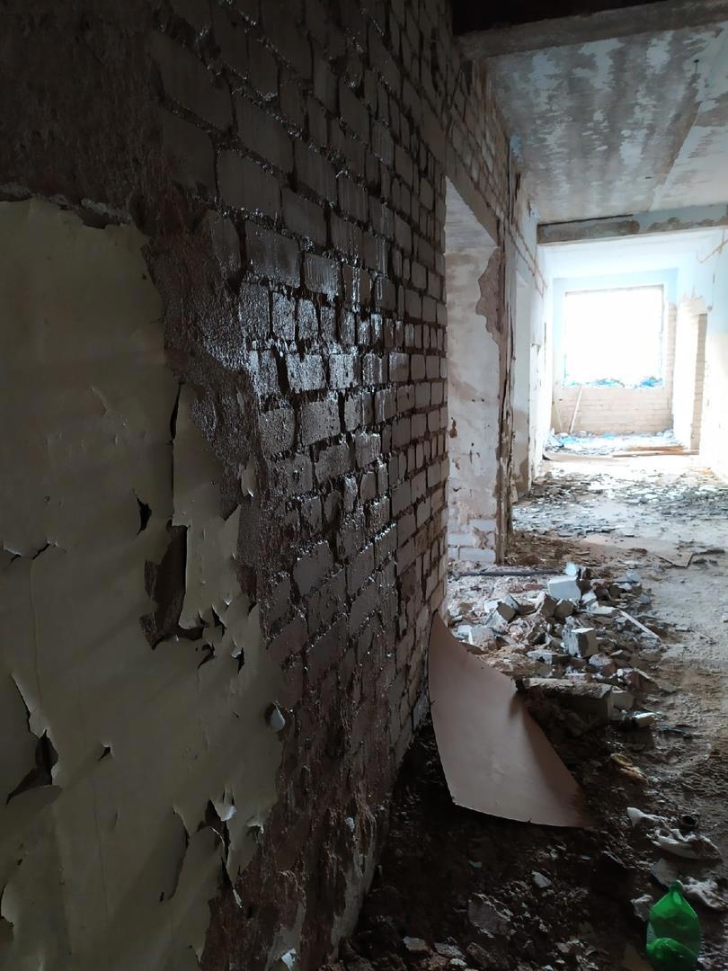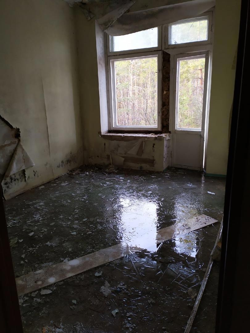 Больше всего пострадал трехэтажный жилой корпус. Вода просочилась до 1 этажа. Причем в полупустых комнатах она так гулко капает, что первое впечатление: по зданию ходят толпы народа. С учетом специфики санатория здесь можно снимать фильм ужаса с ожившим прошлым.
