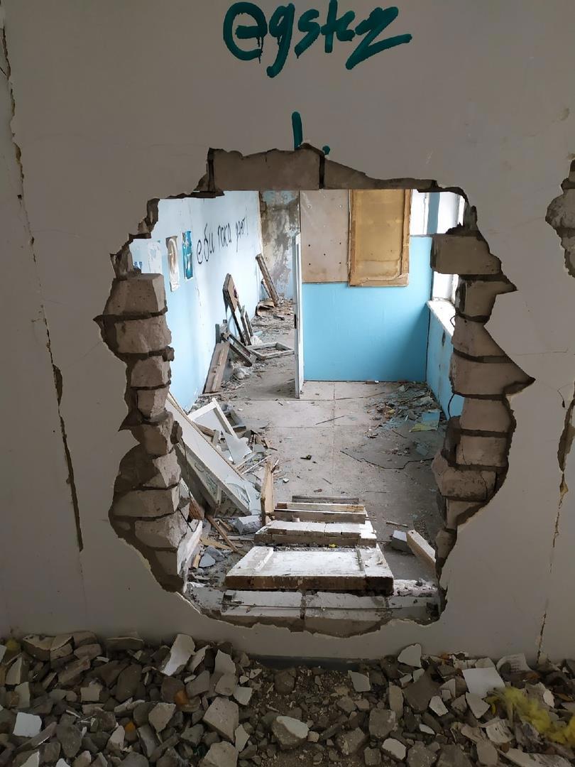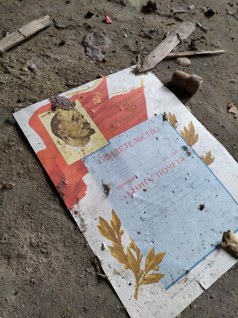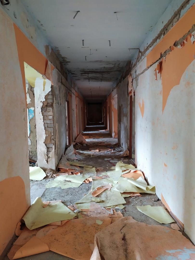 Это бывшая столовая. Мы нашли старое меню на полу: гороховый суп, компот, пюре, каша манная... Все по граммам, все по норме...