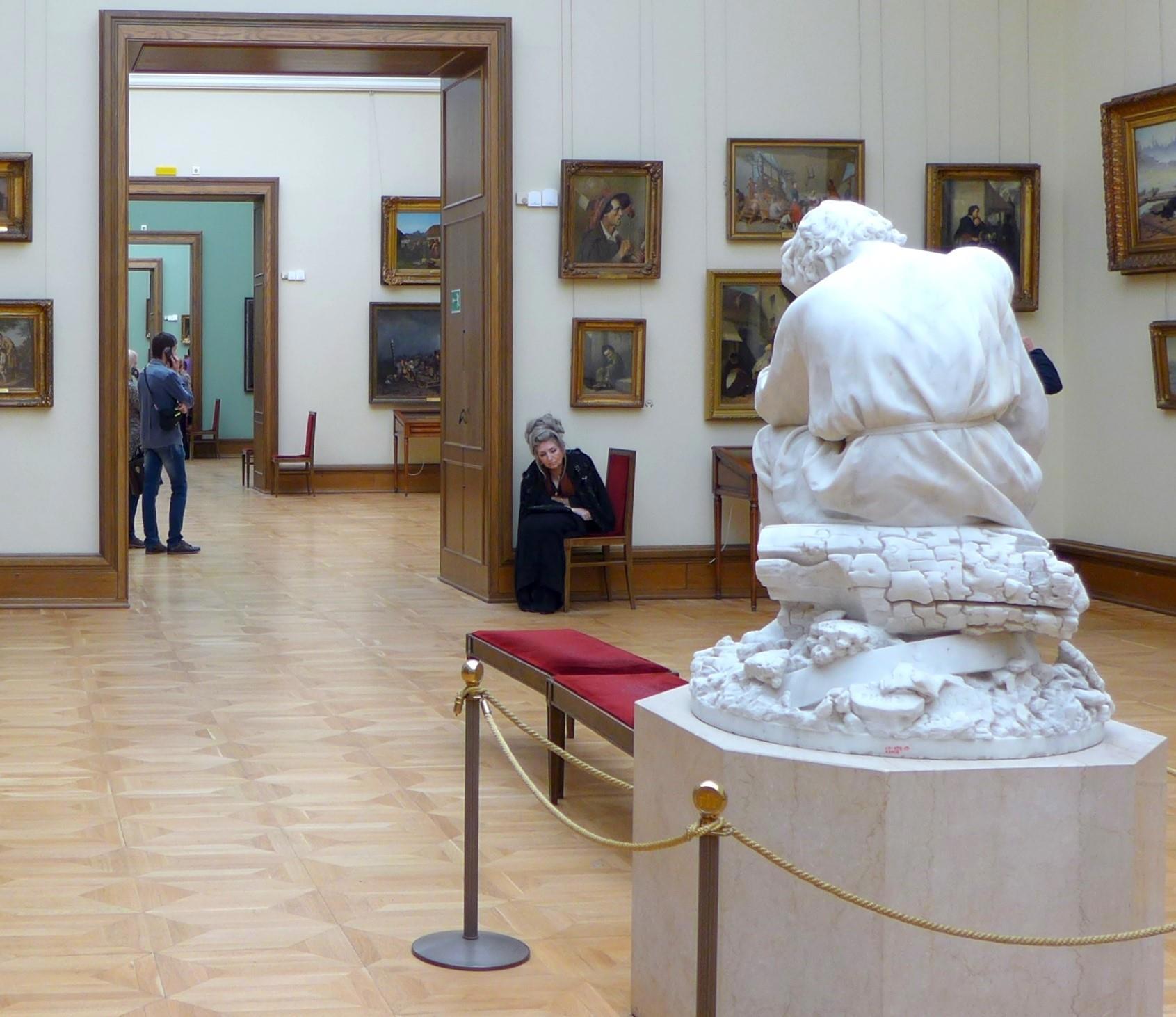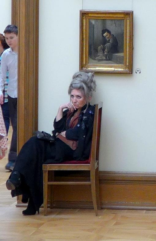 Автор: Наталья ГерценТретьяковская галерея. 2016 год. Не сразу поняли, что это смотритель. После заинтересовались, узнали, как её зовут. Нина Александровна. И она действительно смотритель. На тот момент ей было 64 года. Не знаю, работает ли сейчас. Надеюсь, что ещё работает.