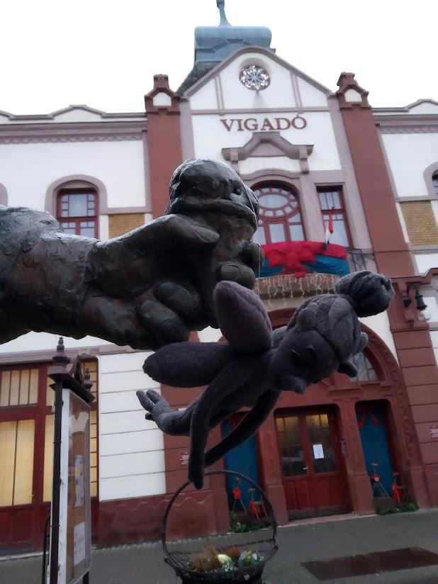 А, нет, вроде бы всё в порядке, можно лакомиться мороженым, которое отмеряет мороженщик Багамери из детской книжки венгерского писателя Иштвана Чукаша (по-венгерски будет вернее писать Чукаша Иштвана, у венгров фамилия ставится перед именем). Чукаш родом из Кишуйсаллаша, того самого города, по которому гуляет Миц (и где, по совместительству проживает некто Ллирска). На самом деле в городке установлено целых два памятника его литературным героям, и фигура третьего — дракончика Шюшю — на большой детской игровой площадке. Площадка тоже носит имя Шюшю. А именем Багамери назван ежегодный детский фестиваль с аттракционами, играми и всяческими развлечениями. В последних два года он затих, конечно, в 2020 вообще отменили из-за пандемии, а так — большое и радостное событие в жизни города всегда.