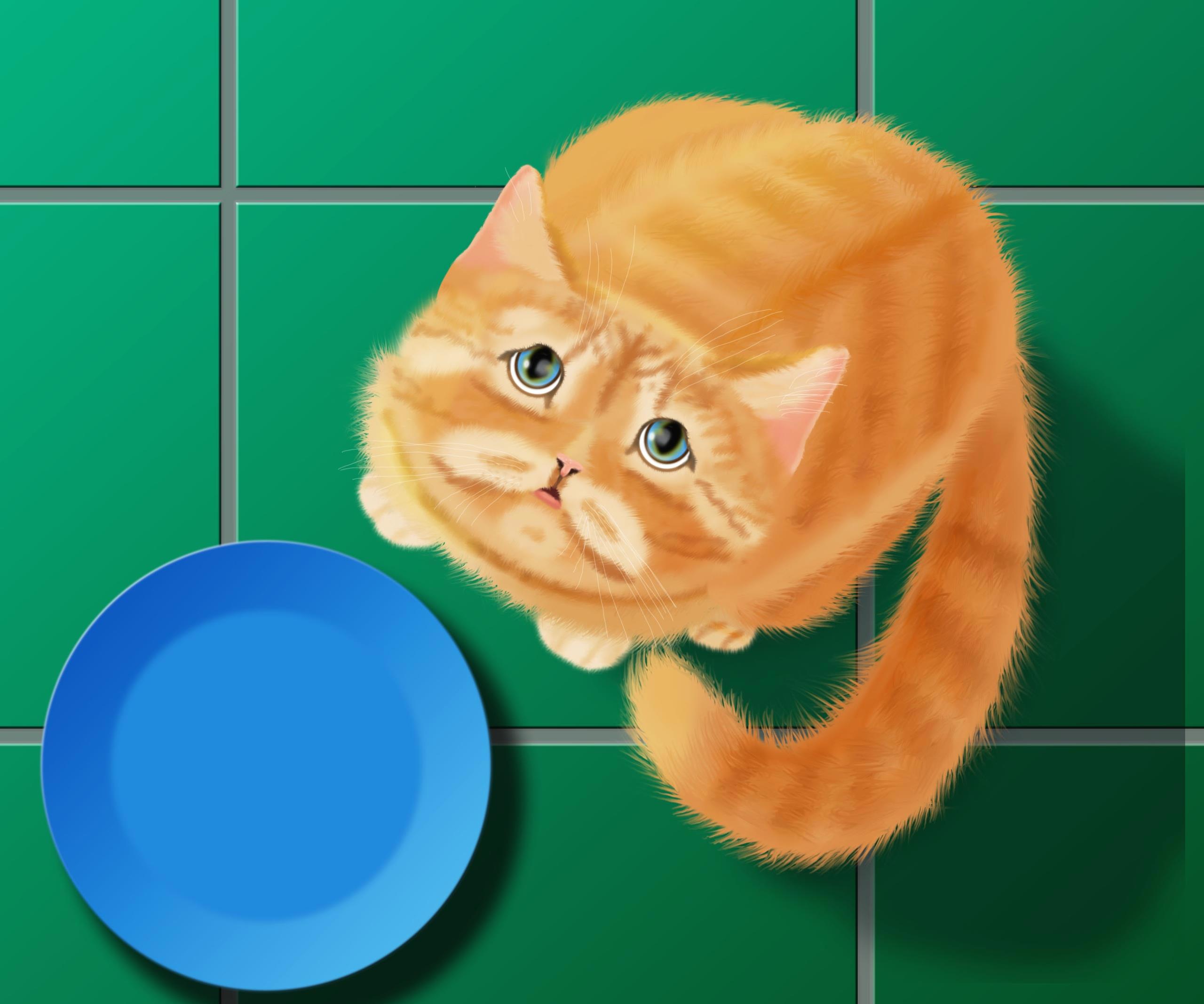 Вот такой котишка был нарисован в фотошопе. Рисовался на ПК.