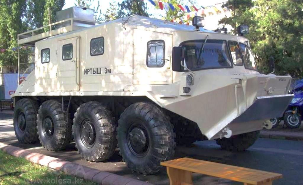 Кузов у него сварен из алюминиевого сплава. Он даже в морской воде не ржавеет. Лёгкий. Значит достаточно экономичный. И четыре оси, как у БТРа. Это значит, что он почти как гусеничный по проходимости. Кстати, о БТРах… их сейчас с хранения продают частникам в безоружном исполнении. И некоторые их покупают, восстанавливают, дооборудуют и получается очень даже живучий плавающий бронеавтомобиль. Вот такой, например: