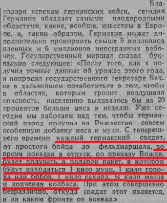 Вот нашлось - откуда байки про одинаковость питания - газета "За Родину" опубликовала в 1942 году эдакое: