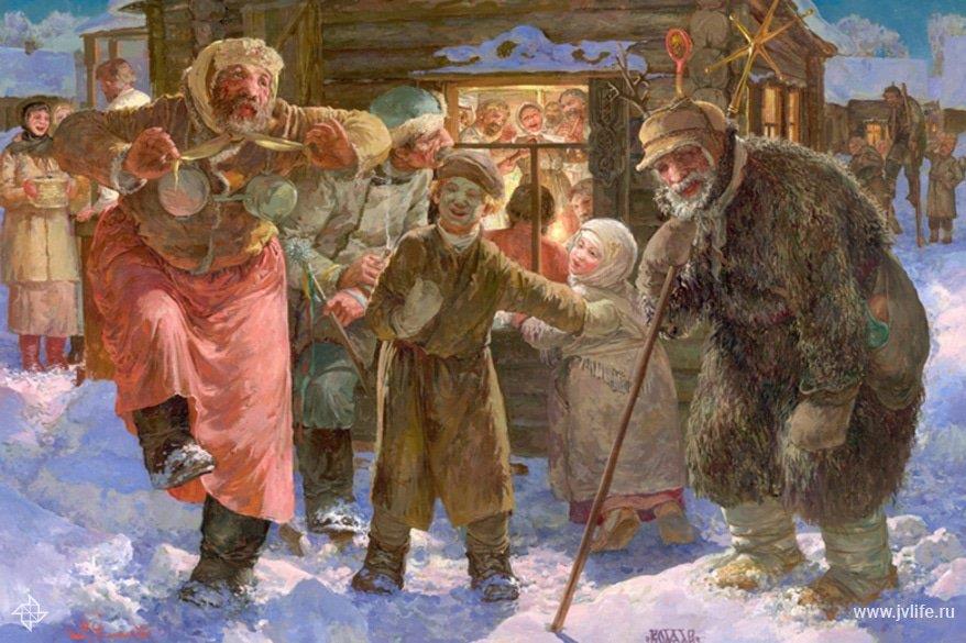 Перенесемся, однако, из шумных городов в народные толщи, в деревню, где до революции проживало подавляющее большинство народонаселения Российской империи. Именно в деревенской исконной Руси святочное действо сохраняло многое идущее от языческой древности, хотя и было освящено христианством.