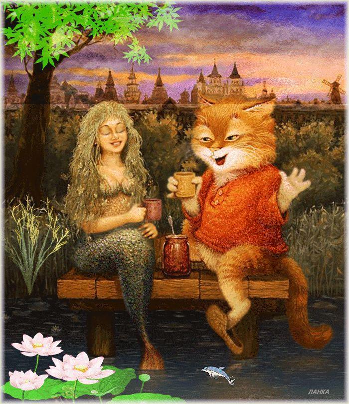 — Что-о-о? Корабль, какой корабль? — возмутился кот. — А! Ты про этот? — Кузьма небрежно махнул лапой. — Корабль, как корабль, даром, что летучий. Ты туда посмотри! — восхищённо выдохнул кот, указав лапой на стайку весело щебечущих нимф. — Вот где красота невозможная! Какая стать, а грация, а голоса — м-м-м. Это-ж просто что-то совершенно за-мурр-мурр-муррчательное. Всё, я влюблён! Женюсь, как пить дать женюсь! — воскликнул кот, в порыве чувств сорвав шляпу, прижав её обеими лапами к груди. — Вот прям счас выберу вот ту в зелёном, или эту в синем, и женюсь на обеих!