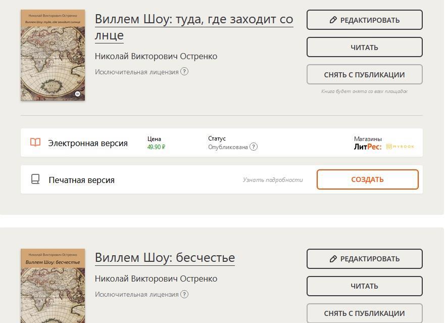 Автор: Nicolas MadeyraОтносительно недавно решил заняться тем, что уже написал. Так, решил себя опробовать на площадке ЛитРес. Для пробы отправил две свои известные книги "Виллем Шоу: бесчестье" и "Виллем Шоу: туда где заходит солнце".