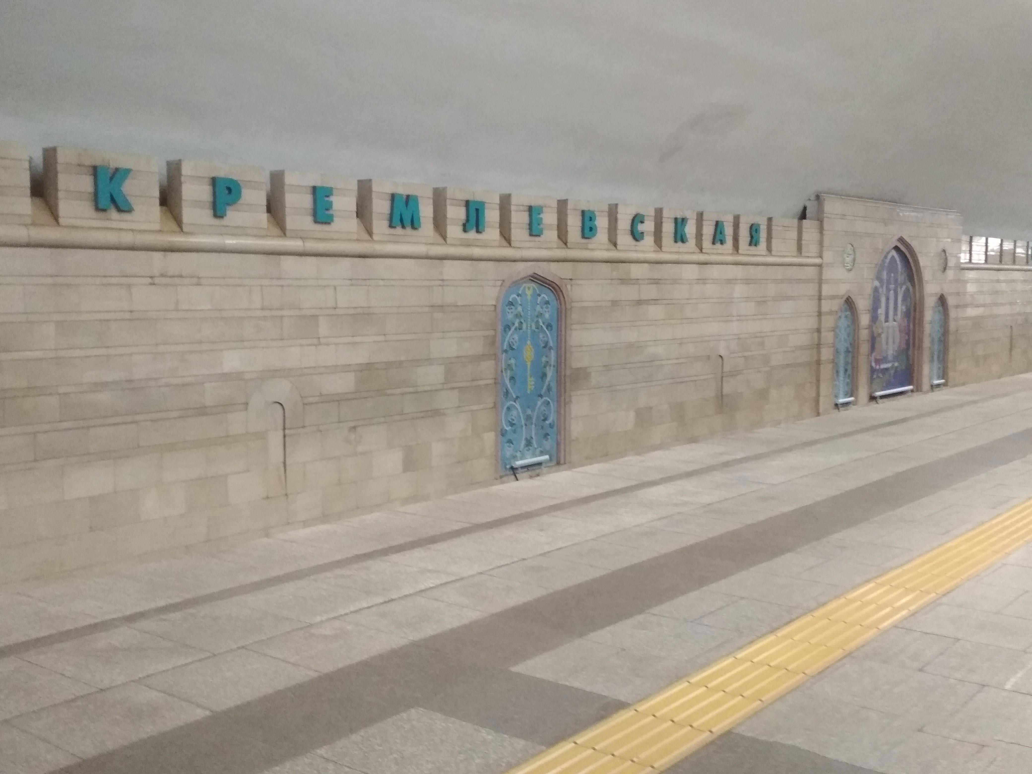 Именно в этом метро я осознал, что оно впереди планеты всей и даже впереди Питера, т.к увидел впервые в жизни станции вообще без кассиров. В Казани цифровое будущее уже наступило. А в Питере еще нет. За пару минут мы спустились по каменной лестнице из кремля на станцию очень неглубокого, по сравнению с Питером, метро под названием – о неожиданность - «Кремлевская». Я имел желание привычно купить жетон для разовой поездки или хотя бы проездной билет в виде пластиковой карточки. Но был слега удивлен, что пообщаться на эту тему абсолютно не с кем, кроме, разве что милиционера. (Простите, полиционера). Вокруг виднелись одни бездушные автоматы для покупки таких билетов и никаких тебе окошечек с тетеньками, у которых можно все выспросить. Увы.