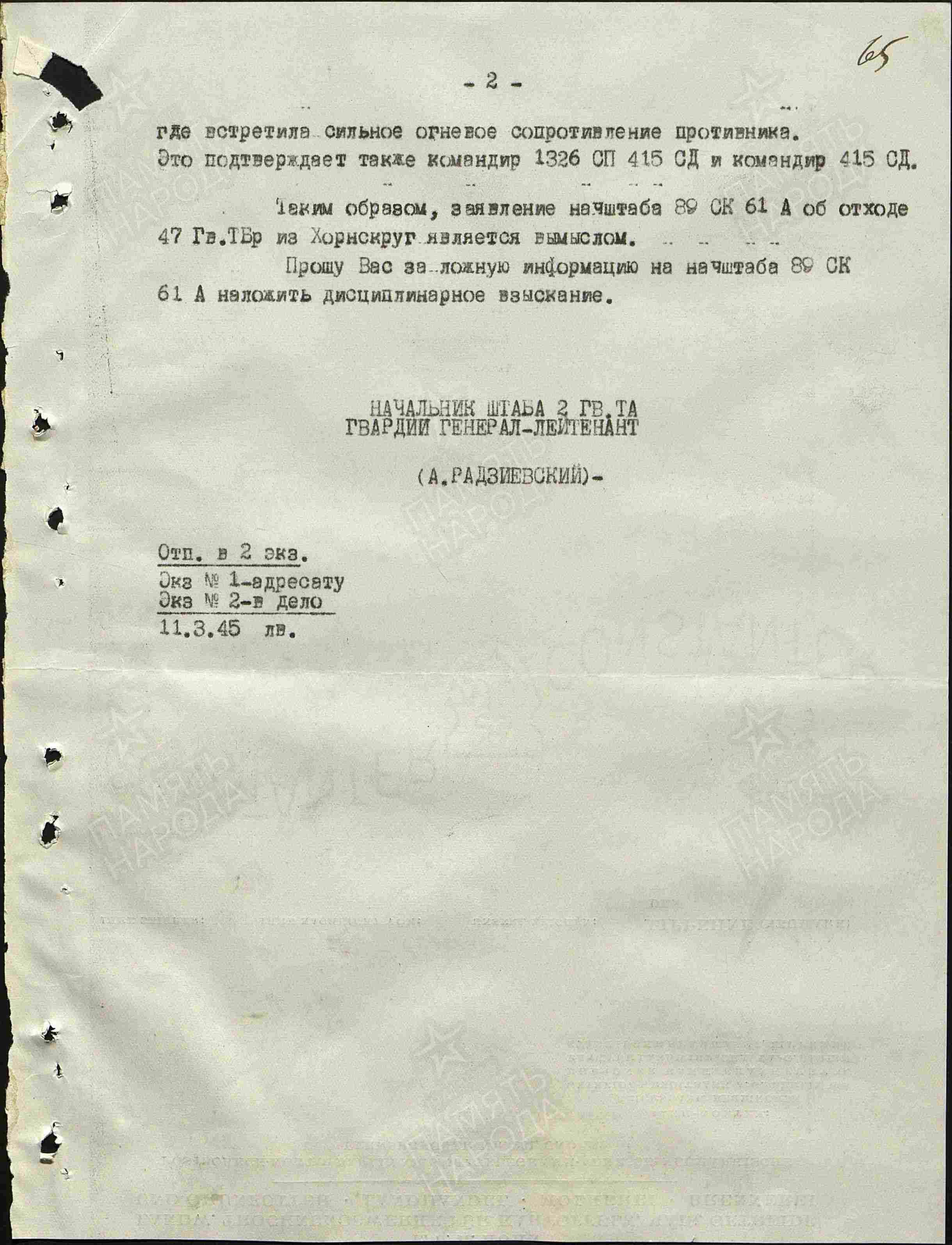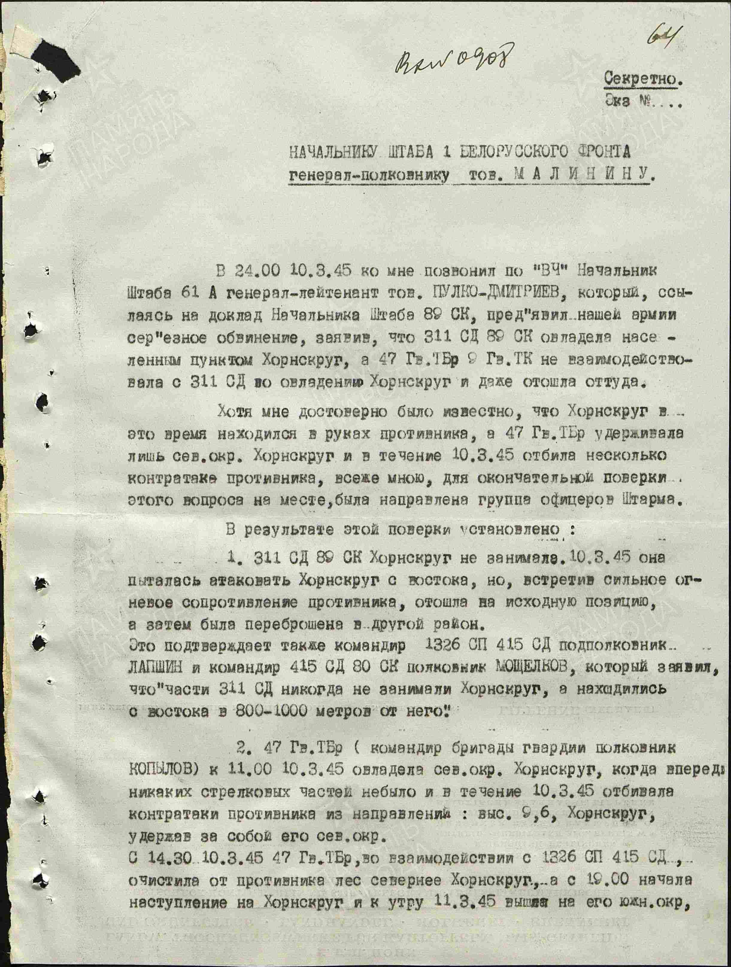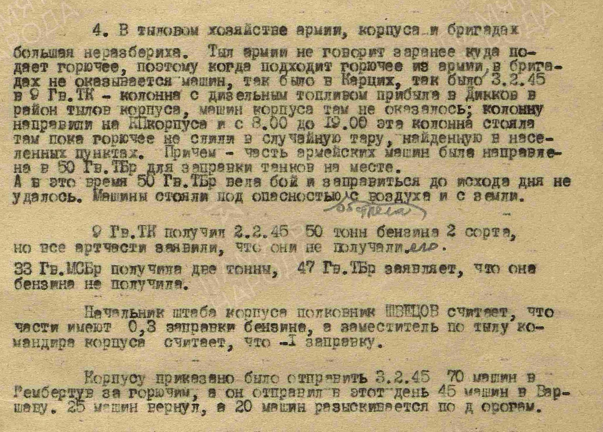 Достаточно типовой фрагмент из дел 2-й гвардейской танковой армии в начале 45-го.