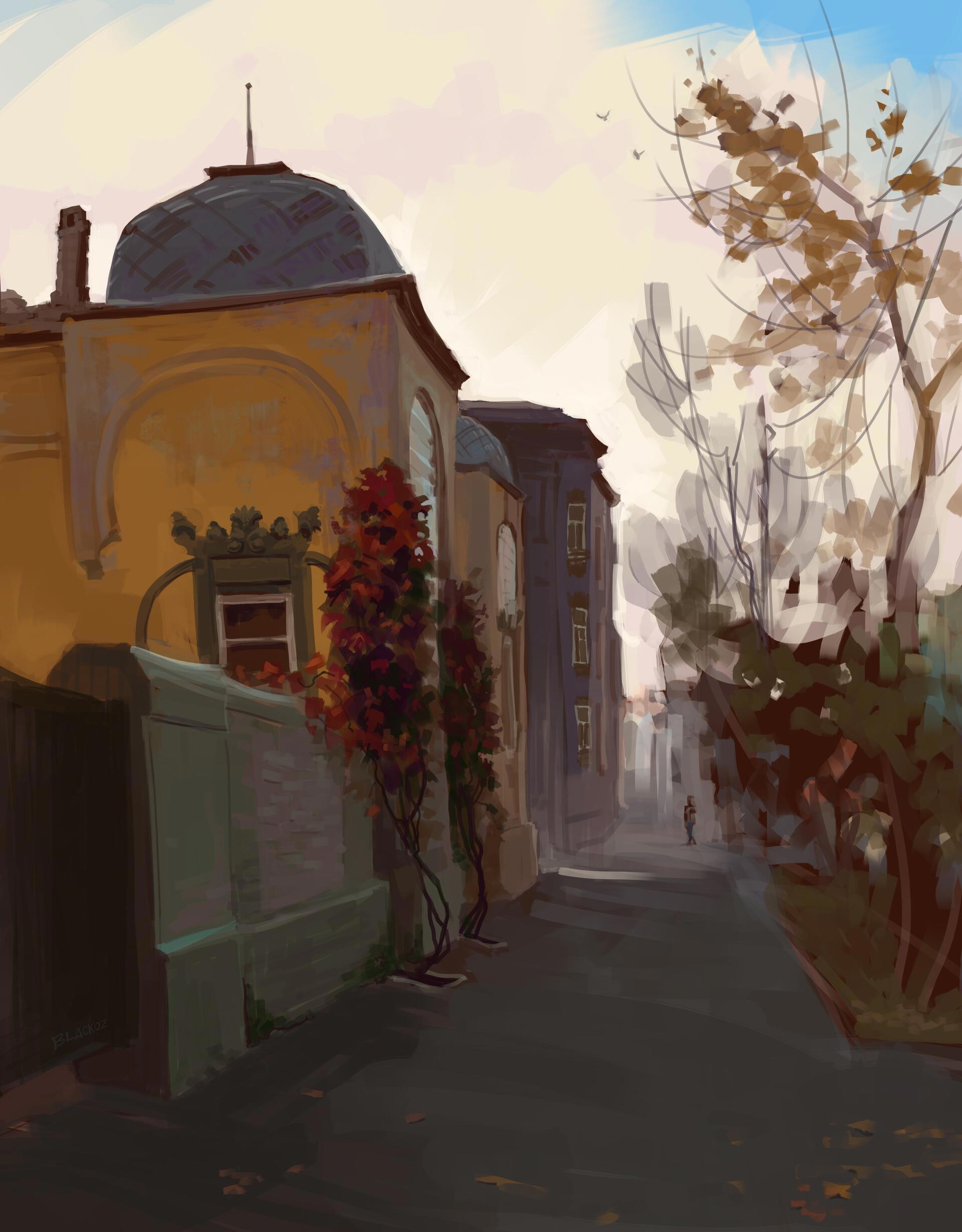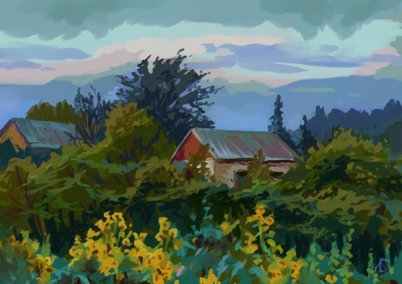 Продолжаю выкладывать свои наброски городской и сельской обстановки. Не устаю любоваться природой и бесхитростной архитектурой, надеюсь передать и вам это настроение.