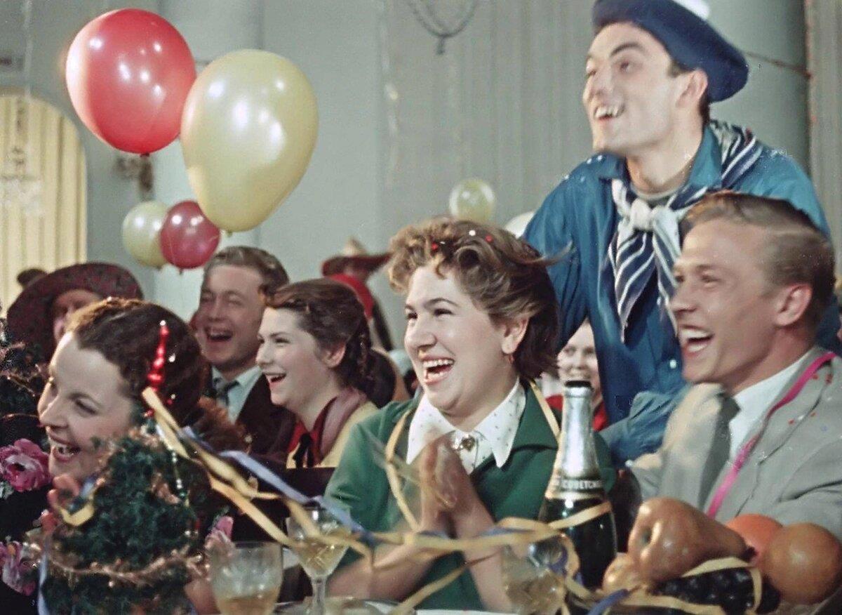 Именно в советское время появилась традиция встречать Новый год под бой курантов с бокалом шампанского в руке. В 1962 году на экраны вышел легендарный «Голубой огонек» — новогодняя передача, идущая на телевизионных экранах до сих пор.