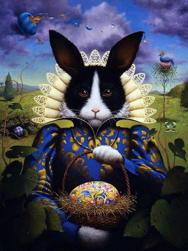 Автор: Юрий ТерновскийВсе было как всегда в этот вечер, художник созерцал свою незавершенку, а его муза нежно ему в этом помогала, забавляясь со своей любимой игрушкой - беленьким кроликом. Он был таким потешным, этот пушистый комочек счастья, что эти двое просто не могли без него жить. Сейчас уже никто не вспомнит, когда это чудо появилось в их доме, но это и неважно. Время стирает... Но только не ту любовь, которую этот ушастый зверек принес в их дом. Возможно он был таким... С яйцом благосостояния в доме. Или такой...