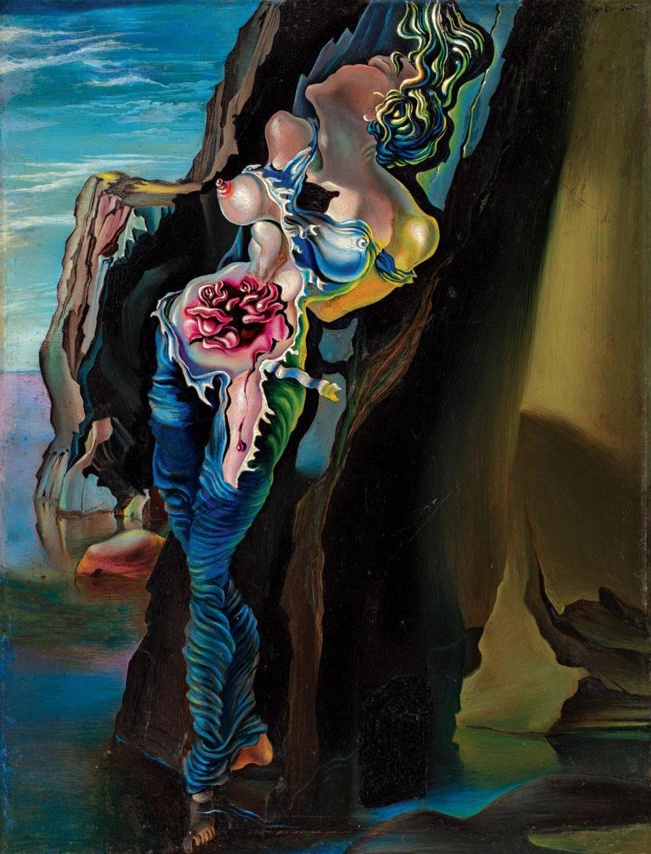 Полотно 1931 года, девице сегодня 90 лет. а как молода и грациозна в своей обворожительной наготе, притягивающей взгляд к самым сногсшибательным местам. Один правый сосок на грани умопомрачительного возбуждения стоит всего человеческого наслаждения, чтобы любоваться им вечность. А разорванное платье, так и представляется, как художник в порыве страсти набрасывается на свою Галу... В мыслях, конечно, чтобы не расходовать энергию почем зря, и начинает творить. Понятно, что муза тоже не может сдерживаться и отдается в истомной томе ему вся, запрокинув со сотоном голову. Вопя всем телом с букетом роз на животе, что еще немного и все. Если он прямо сейчас не закончит свое издевательство на холсте, то она кончит без него и прямо здесь. И конечно же - кисть летит в сторону. "Гала...", "А я не Гала,милый". "А мне все равно..." Все равно - капелькой крови на обнаженной ножке, или розового сока, что без разницы... Возможно - это сперма великого мастера, спрятанная в другой цвет, что еще замечательней, так как по максимуму приближает простого обывателя к совершенному творению кисти мастера. Какой абзац... И это еще не конец и даже еще не начало. Муза в нем, муза вокруг... Его муза, его Гала, его Градива... И пусть потом говорят, что на подобное способен только шизофреник! Гды вы вообще видели нормального художника без чертовщинки, оставшемуся в веках? Нигде... Вот и Дали о том же! Его гениальность во всем и даже в перекошенном видении мира. Да,мир такой... И это не искривленное зеркало со стекающими часами, это именно стекающие часы и есть. В чем мы только сейчас и убеждаемся, вглядываясь в кривизну всего. И сегодня это так наглядно, что нагляднее даже и не бывает. Сегодня даже не надо уже включать телевизор, чтобы в этом убедиться. Достаточно просто выйти на улицу, зайти в магазин или спуститься в метро. Какие замечательные перекошенные вокруг лица. Вглядываюсь в отражение в стекле, у самого такое же... В этом и заключается гениальность - увидеть всю сущность окружающих нас вещей, чем и поделиться с миром.