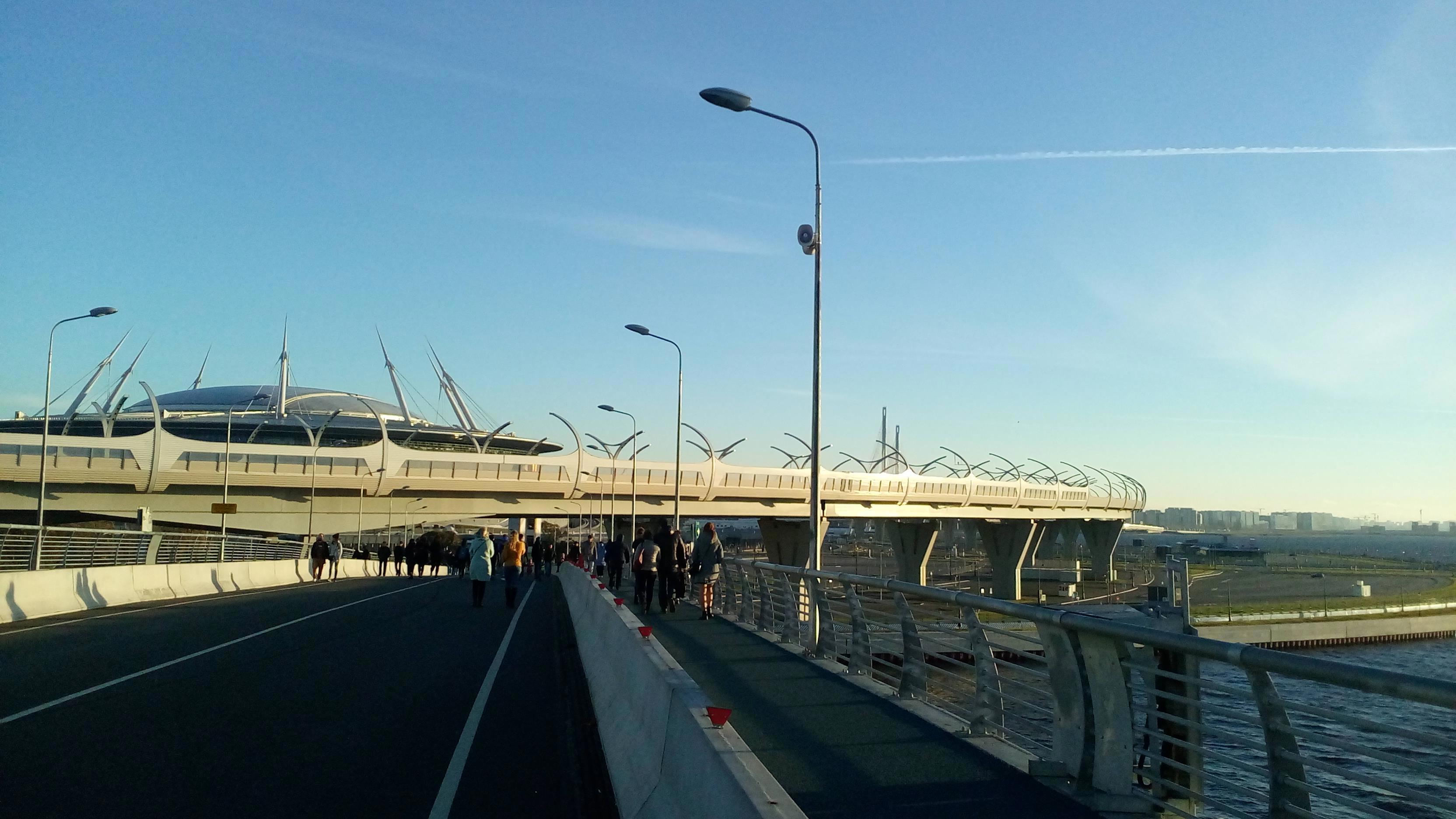 Якорный мост впечатлил красивым видом и сильным ветром с залива. Вышло солнце, но холод осени не сгладил суровой атмосферы.
