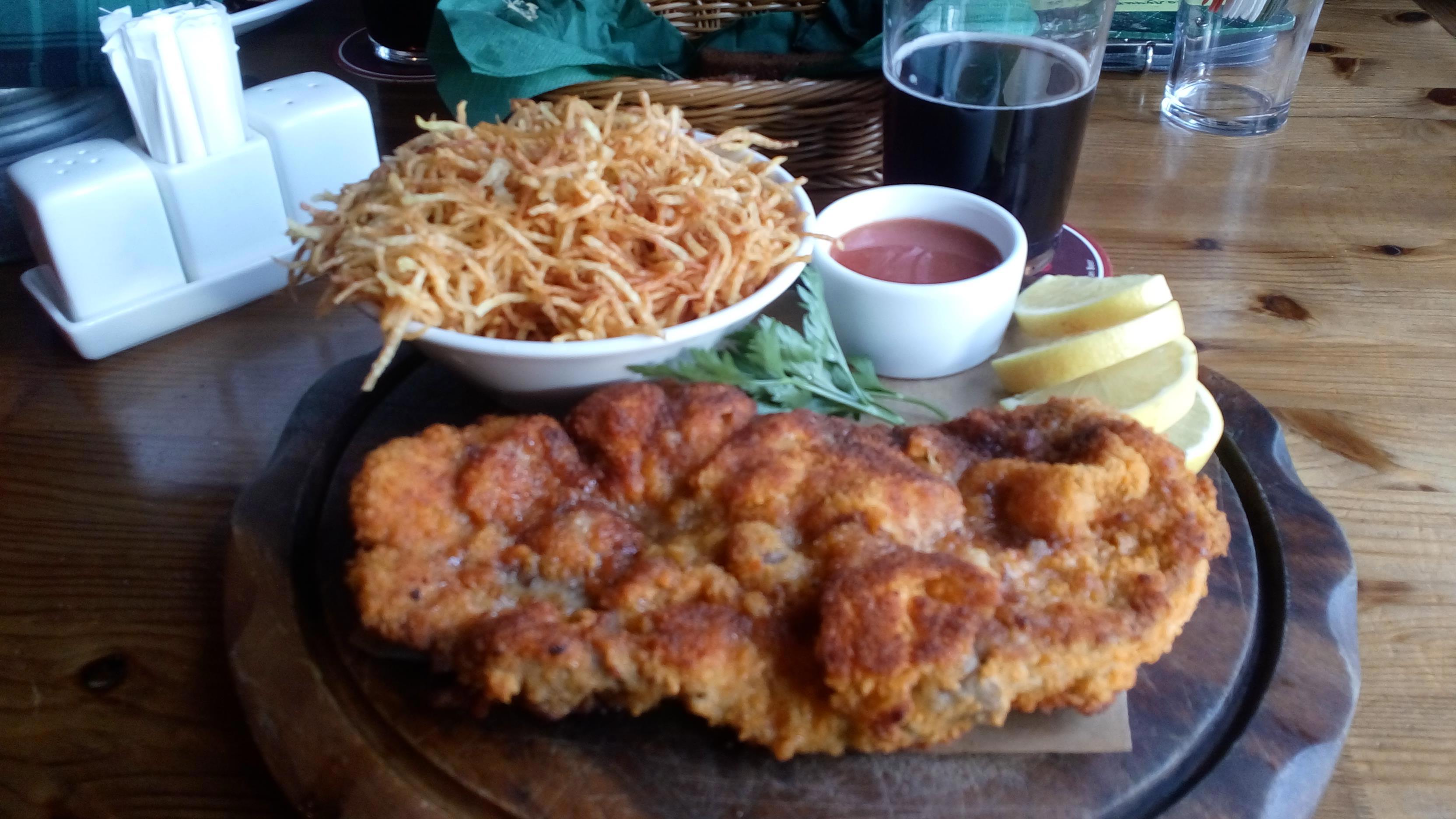*шепотом* А потом мы пошли в паб. Поесть, ничего такого... Ничто не предвещало такой шницель. Я не фотографирую еду, но тут… Я его с фото и без не забуду.
