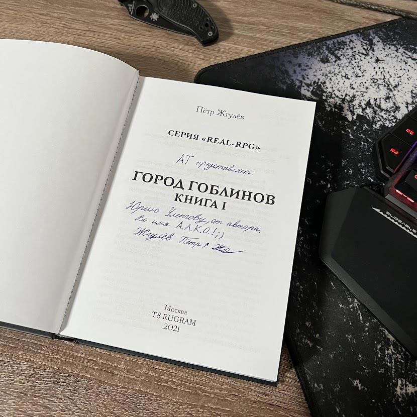 Так как мне было проблематично заказать книги напрямую с Амазона, в этом помог Петя Жгулев, за что ему огромное спасибо. Зная, что я собираю книги знакомых авторов с автографами, Петя положил в посылку свой "Город Гоблинов". Очень круто выглядит:) Спасибо!