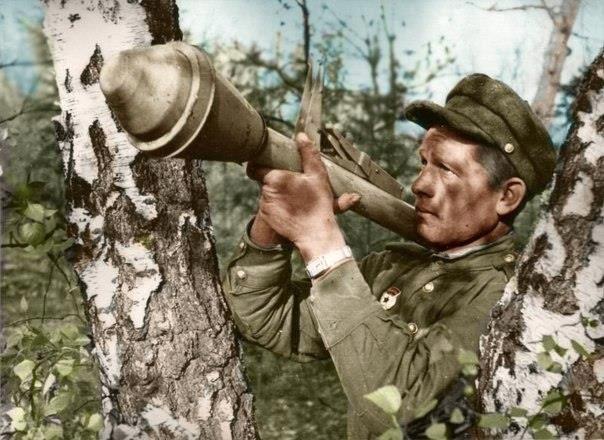 Вот ещё одна фотография нашего гвардейца с «Panzerfaust». На этот раз раскрашенная: